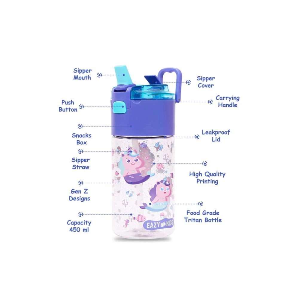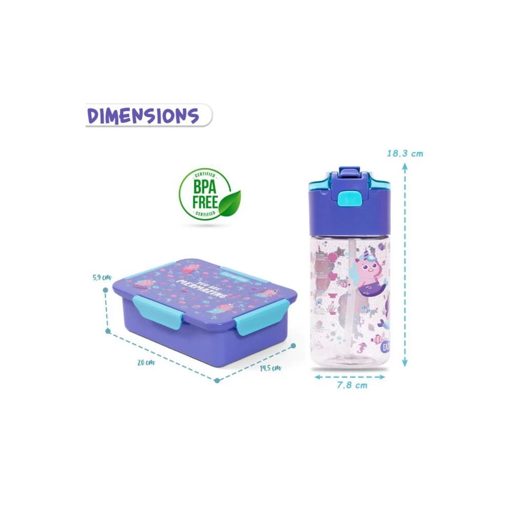 Eazy Kids Lunch Box & Tritan Water Bottle with Snack Box - Mermaid Purple 450ml + 850ml Leakproof Back-to-School Combo by SAMBOX