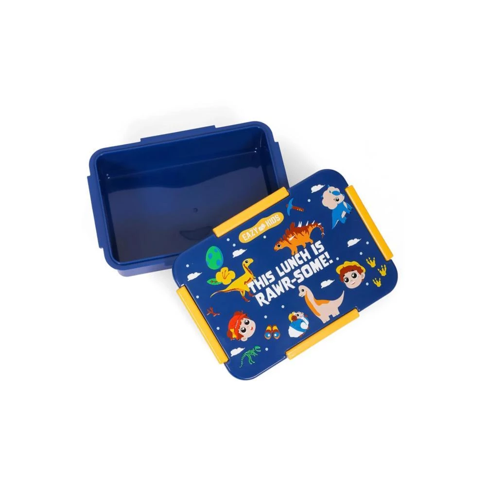 Eazy Kids Lunch Box Set & Tritan Water Bottle with Snack Box - T-Rex Blue 450ml + 850ml Leakproof School Combo by SAMBOX