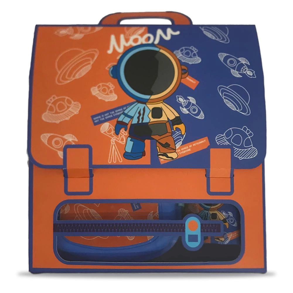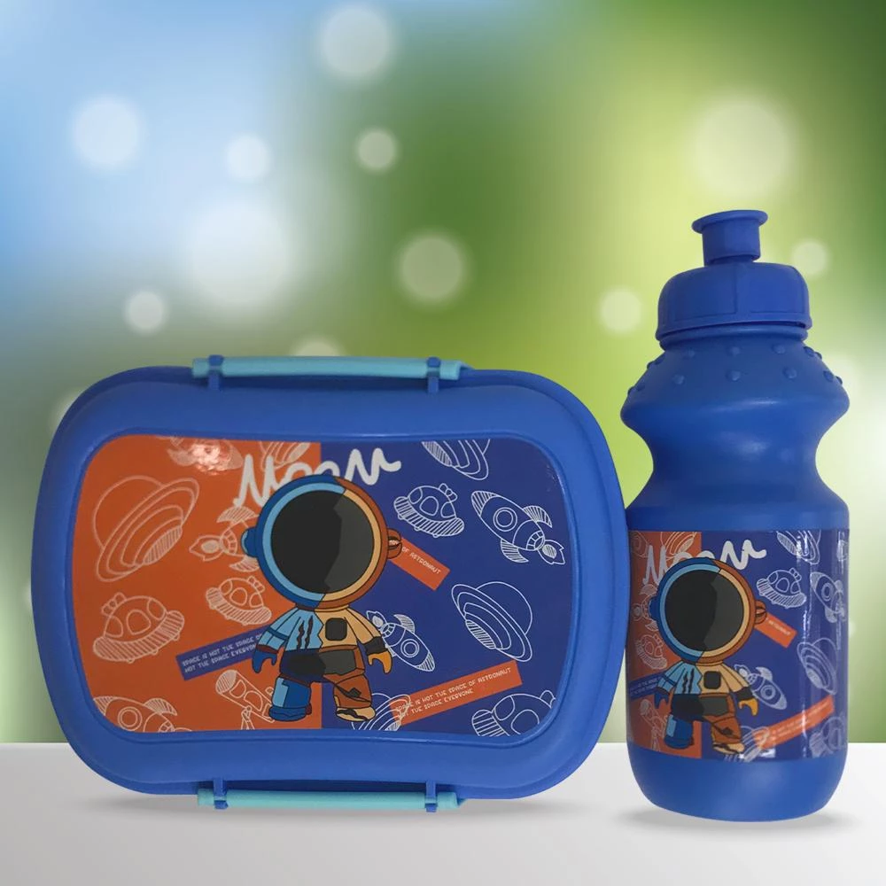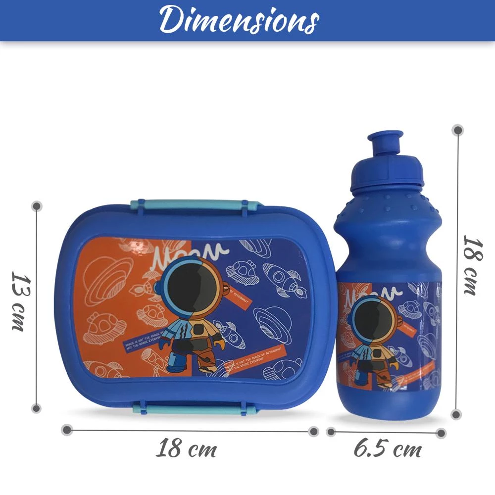 kids lunch box set, astronaut lunch set, boys school lunchware, space themed lunch box, Eazy Kids combo, lunch box with compartments, leakproof kids bottle, BPA free sipper bottle, blue lunch kit, school meal set