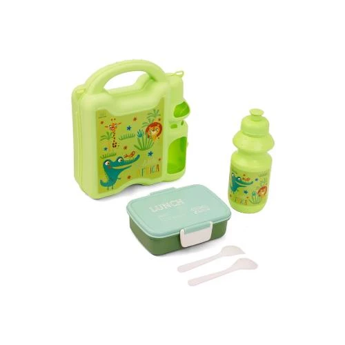 Make mealtime fun and convenient with the Eazy Kids Lunch Box with Water Bottle in vibrant green by SAMBOX. Made from the highest quality BPA and BPS-free plastic, this durable lunch box features one spacious compartment perfect for a balanced meal, accompanied by a high-quality spoon and fork. The included matching water bottle makes it ideal for school, picnics, or outings. Designed to be leakproof and easy to clean, this lunch box combines safety, practicality, and a cheerful green color to brighten your child's day.