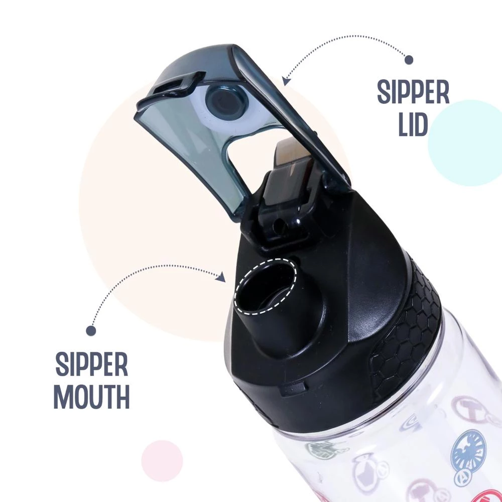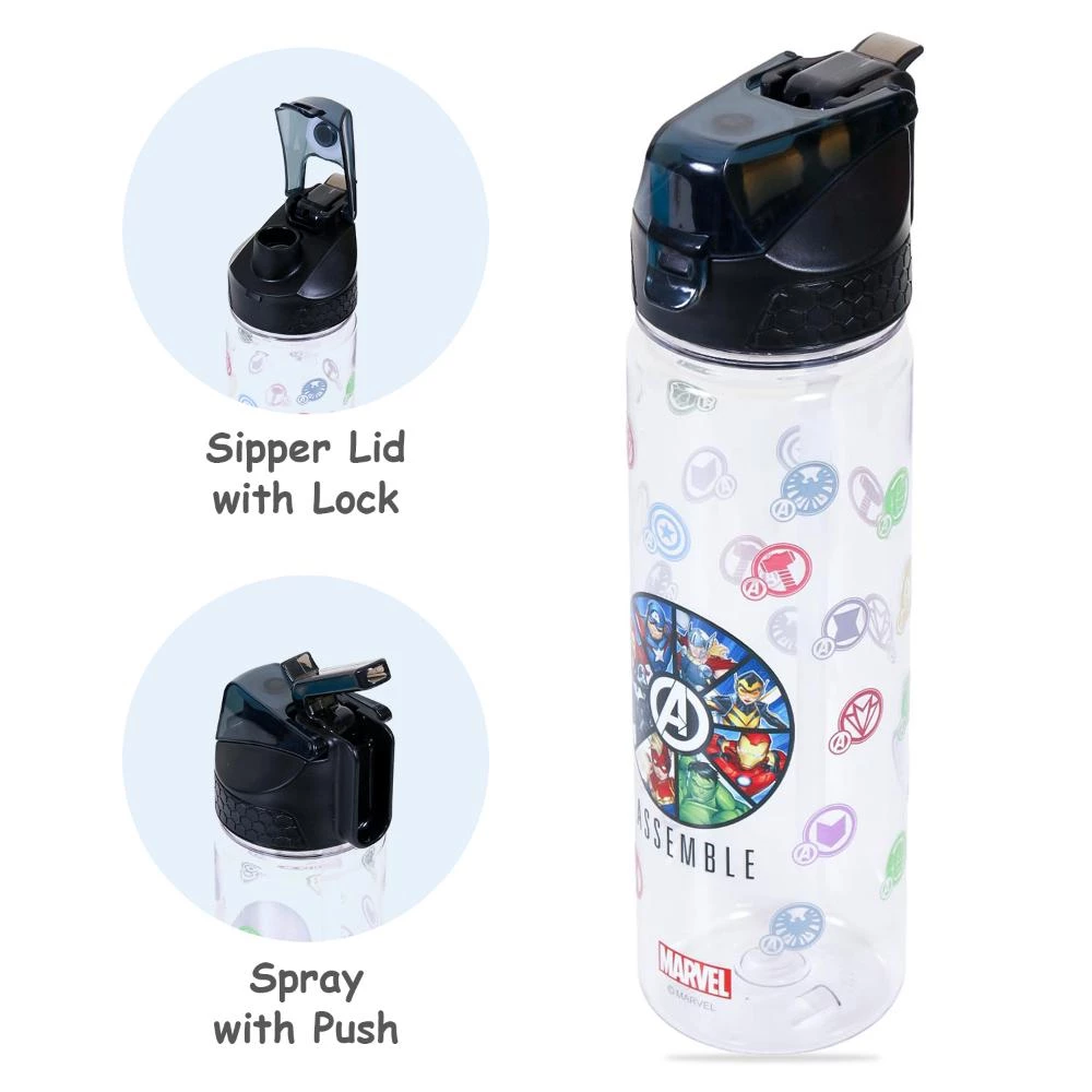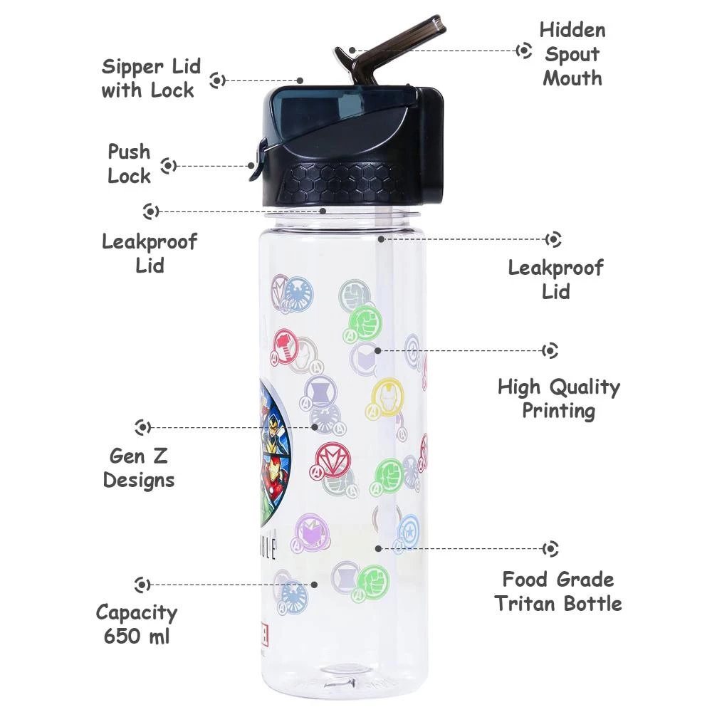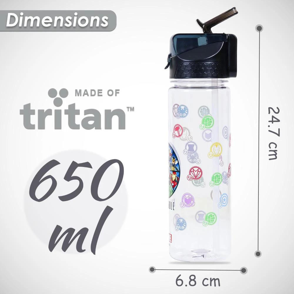 Eazy Kids Marvel Avengers 2-in-1 Water Bottle - 650ml Leakproof Tritan Bottle with Flip Lid & Sipper - Black