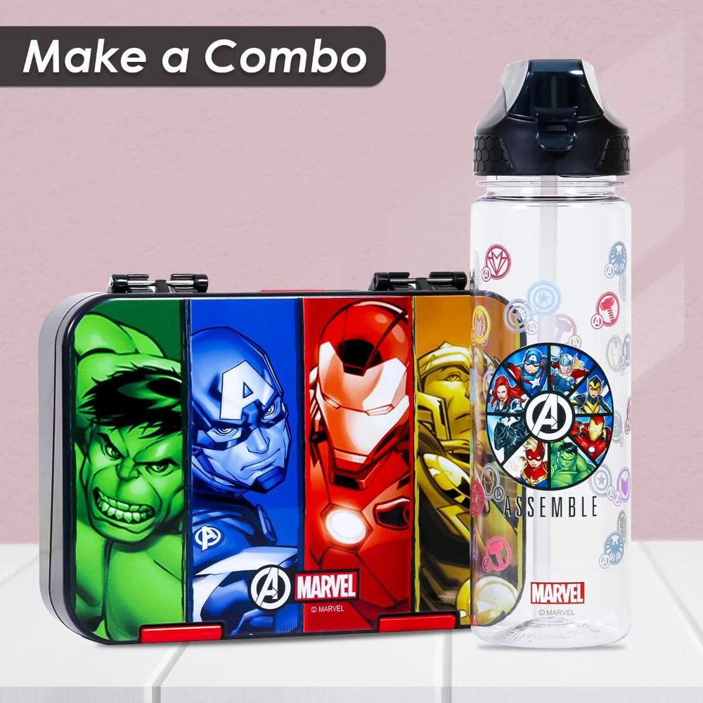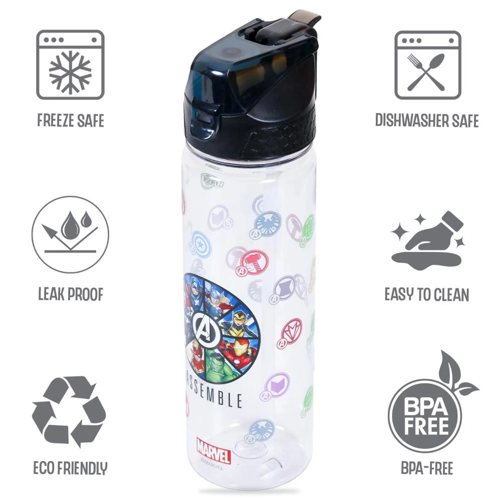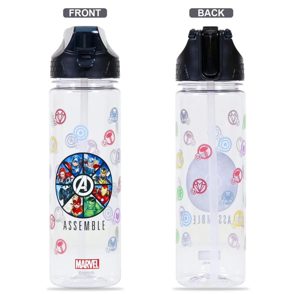 avengers assemble water bottle, marvel 2-in-1 bottle, 650ml kids bottle, BPA free drinkware, superhero hydration bottle, flip lid water bottle, leakproof tritan bottle, back to school marvel, black superhero water bottle, kids water bottle with sipper