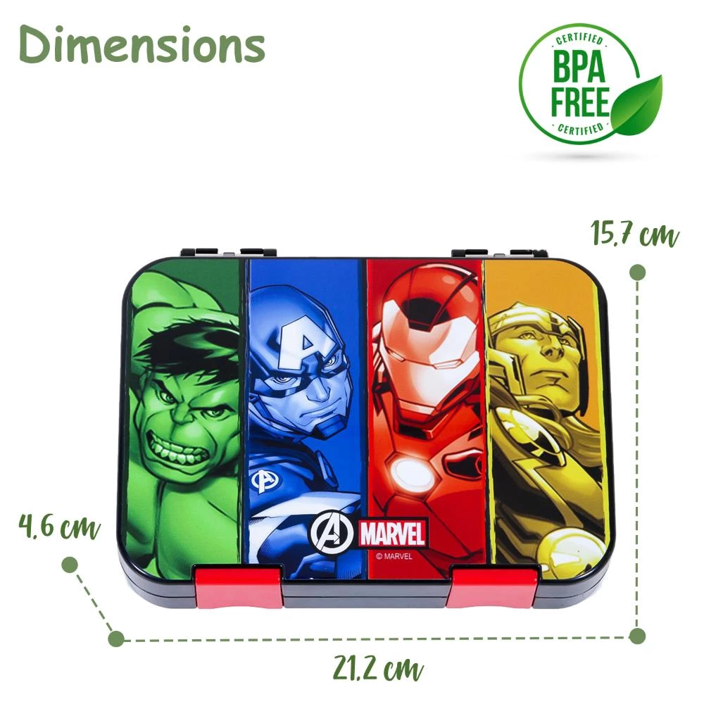 avengers lunch box, marvel bento box, superhero food container, leakproof kids lunchbox, tritan lunch container, 6 compartment bento box, 4 compartment lunch box, boys lunchbox, reusable lunchbox, kids meal prep container