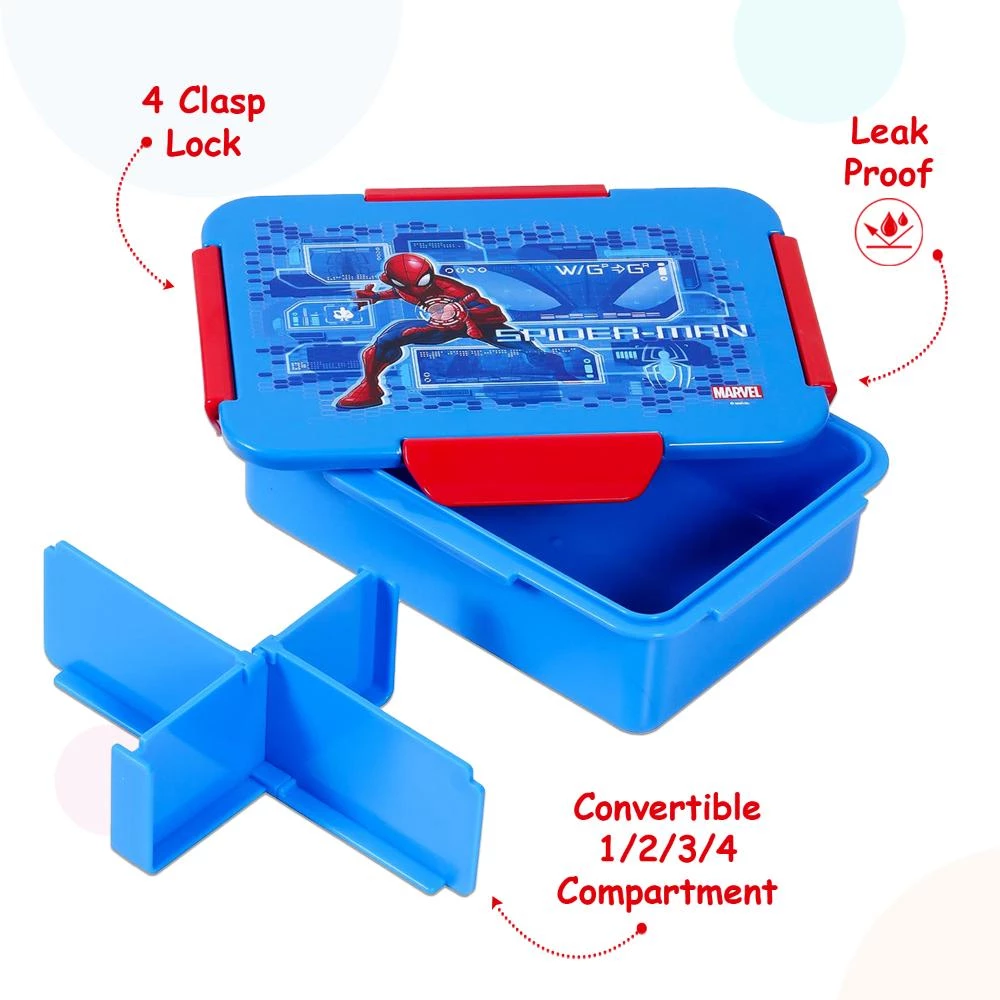 Eazy Kids Marvel Spider-Man Convertible Bento Lunch Box - 1 to 4 Leakproof Compartments - Blue