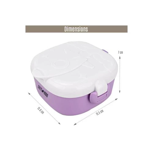 Make mealtime more fun and functional with the Eazy Kids Rocket Lunch Box Meal Set in a playful purple design by SAMBOX. Crafted from 100% BPA-free, non-toxic, eco-friendly, food-grade PP material, this adorable feeding set includes a 600ml leakproof lunch box, an internal 370ml bowl, a child-safe pair of scissors for bite-sized portions or sandwich cutting, and a matching spoon. Designed with a bilateral buckle lock system and a silicone-lined top layer, the box ensures a secure, airtight seal while the ring handle makes it easy for little hands to carry. Lightweight and compact, it's ideal for preschoolers aged 05 years and is freezer safe for added convenience. Whether at school, daycare, or on-the-go, this Rocket-themed lunch box makes eating enjoyable and stress-free for both parents and kids.