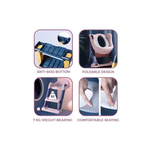 foldable potty trainer seat, kids toilet ladder pink, toddler toilet seat with step, eazy kids pink potty chair, adjustable kids potty seat, baby toilet step stool, soft cushion potty trainer, removable toilet seat cushion, anti-slip potty ladder, girl potty training seat