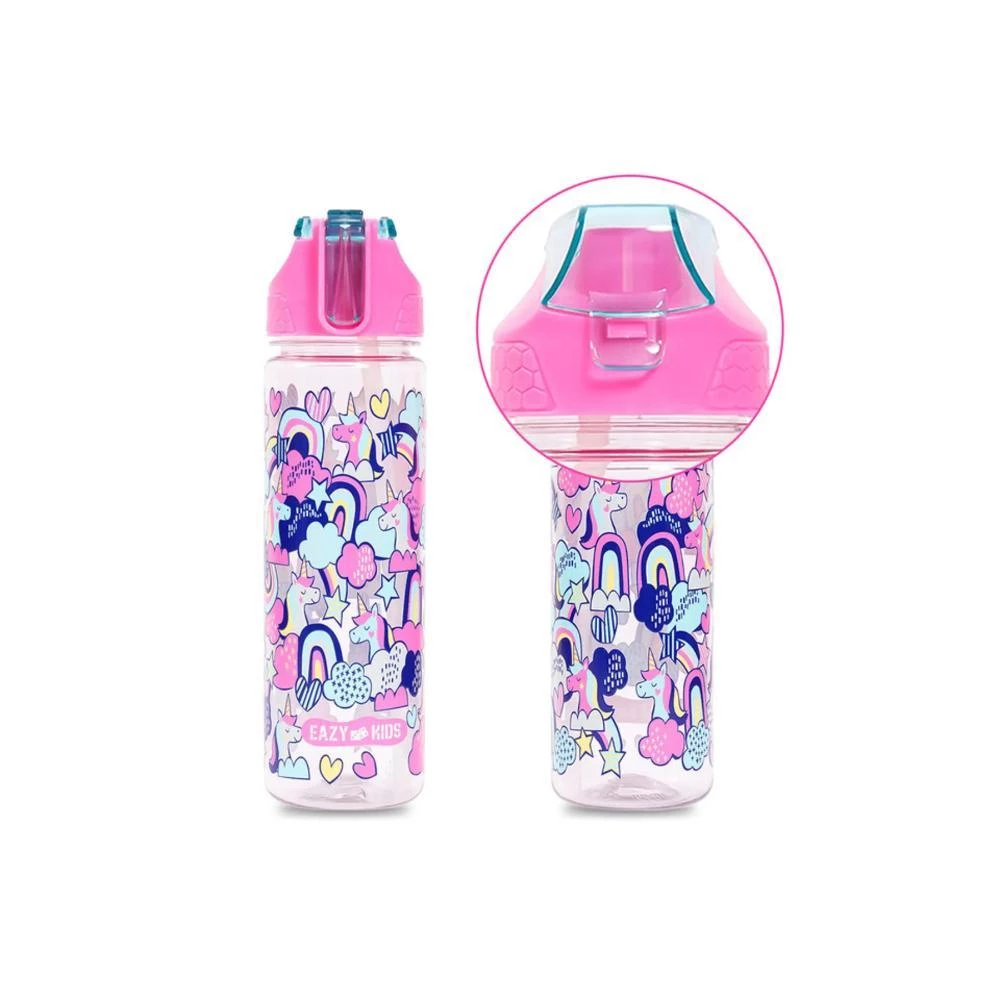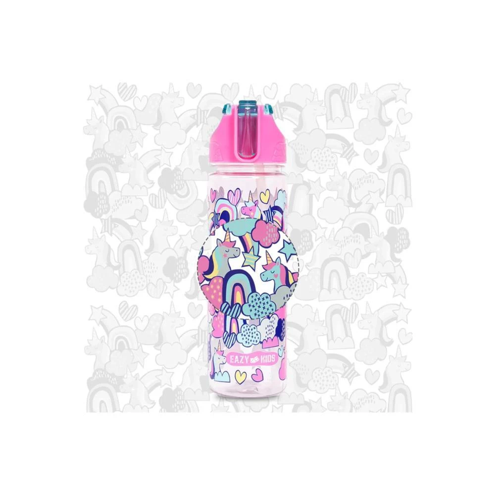 eazy kids unicorn water bottle, kids tritan bottle pink, leakproof flip lid bottle, kids sipper bottle, bpa free school water bottle, unicorn print kids bottle, lightweight kids drinkware, kids hydration bottle, eco friendly kids water bottle, back to school kids drink bottle
