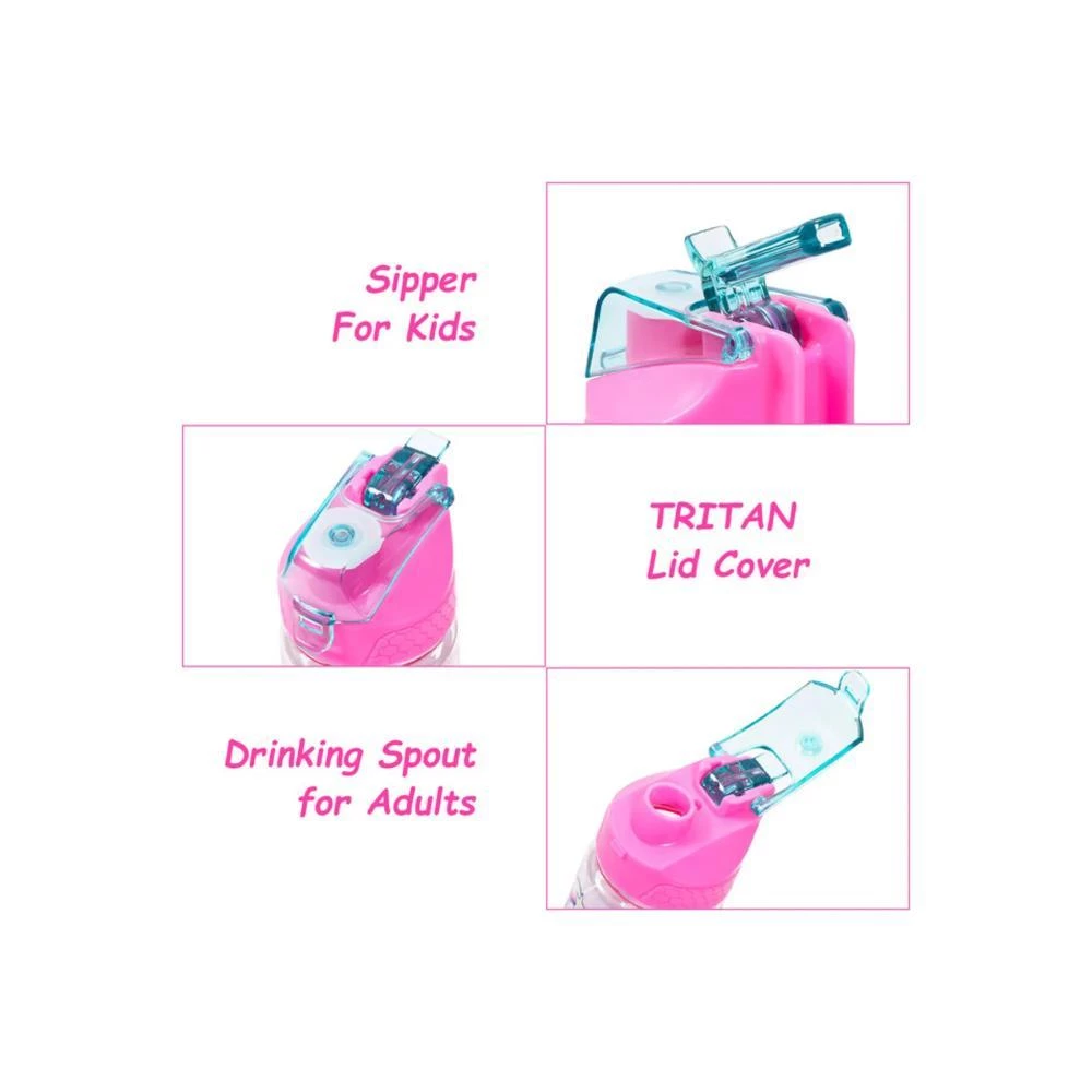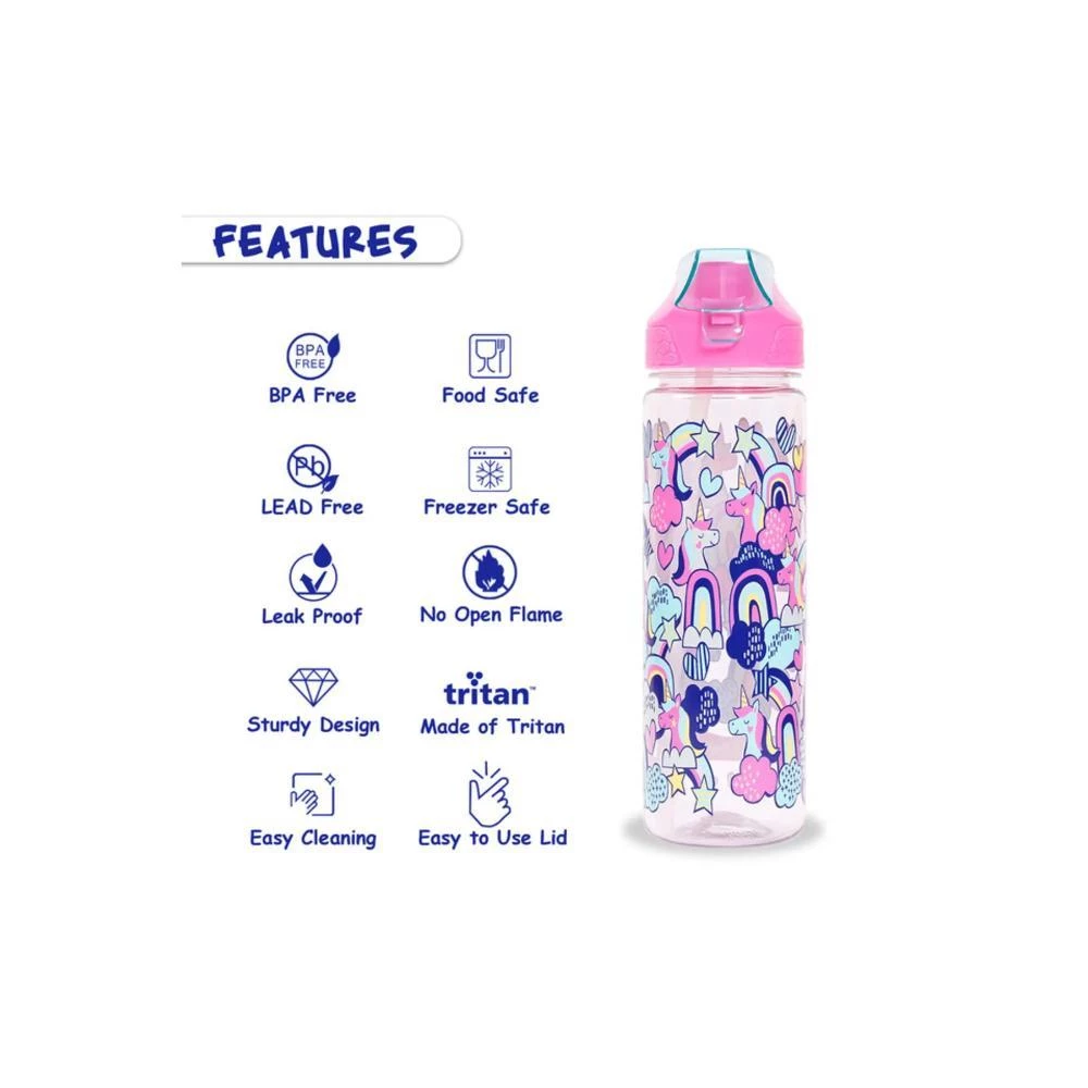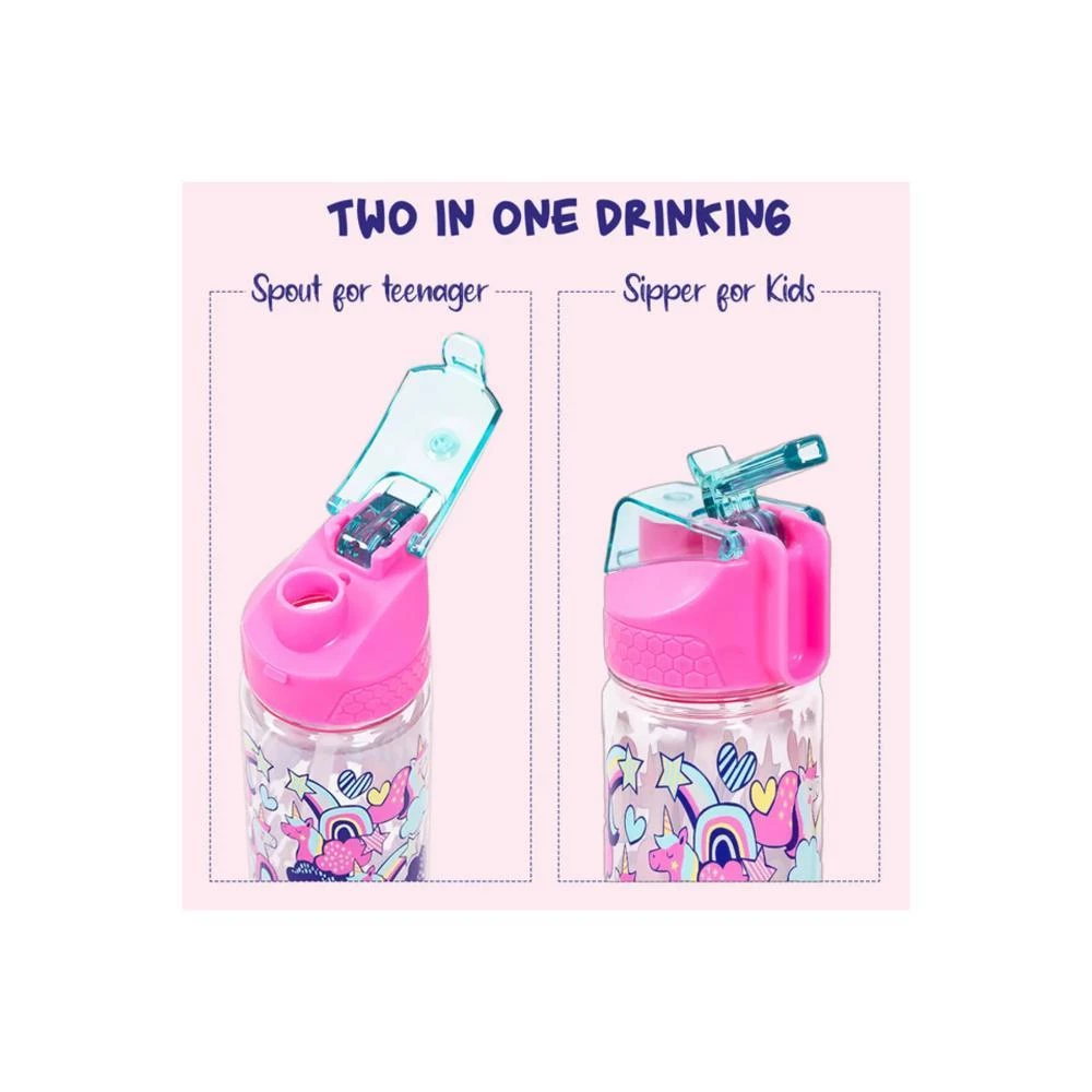 Eazy Kids Tritan Water Bottle with 2-in-1 Drinking Flip Lid & Sipper - Unicorn Pink 650ml Leakproof Kids Bottle by SAMBOX