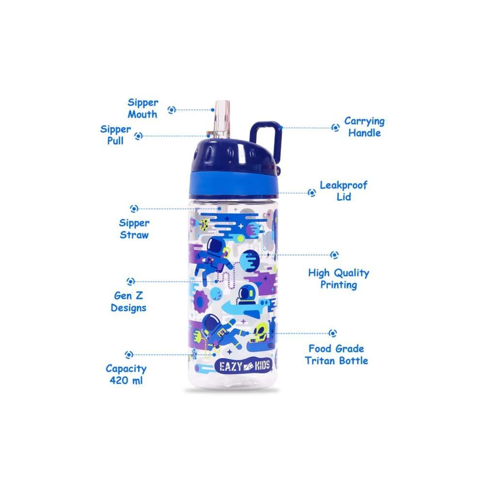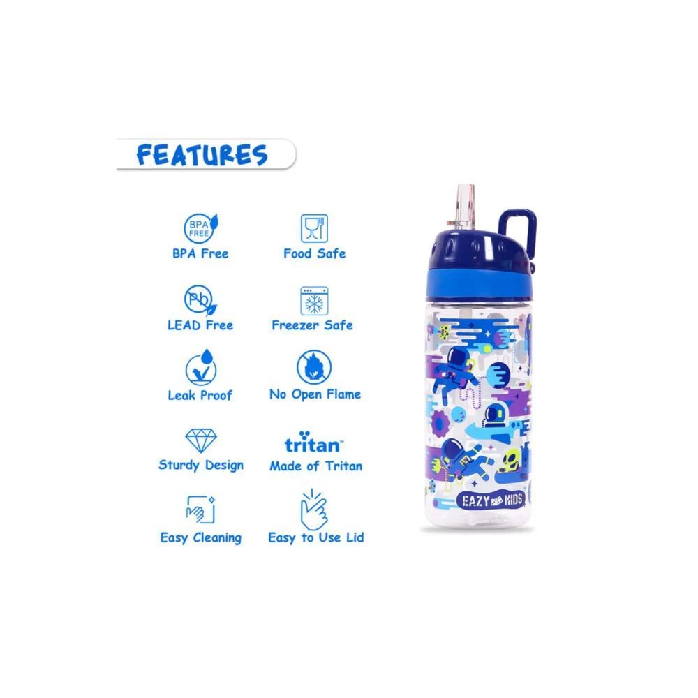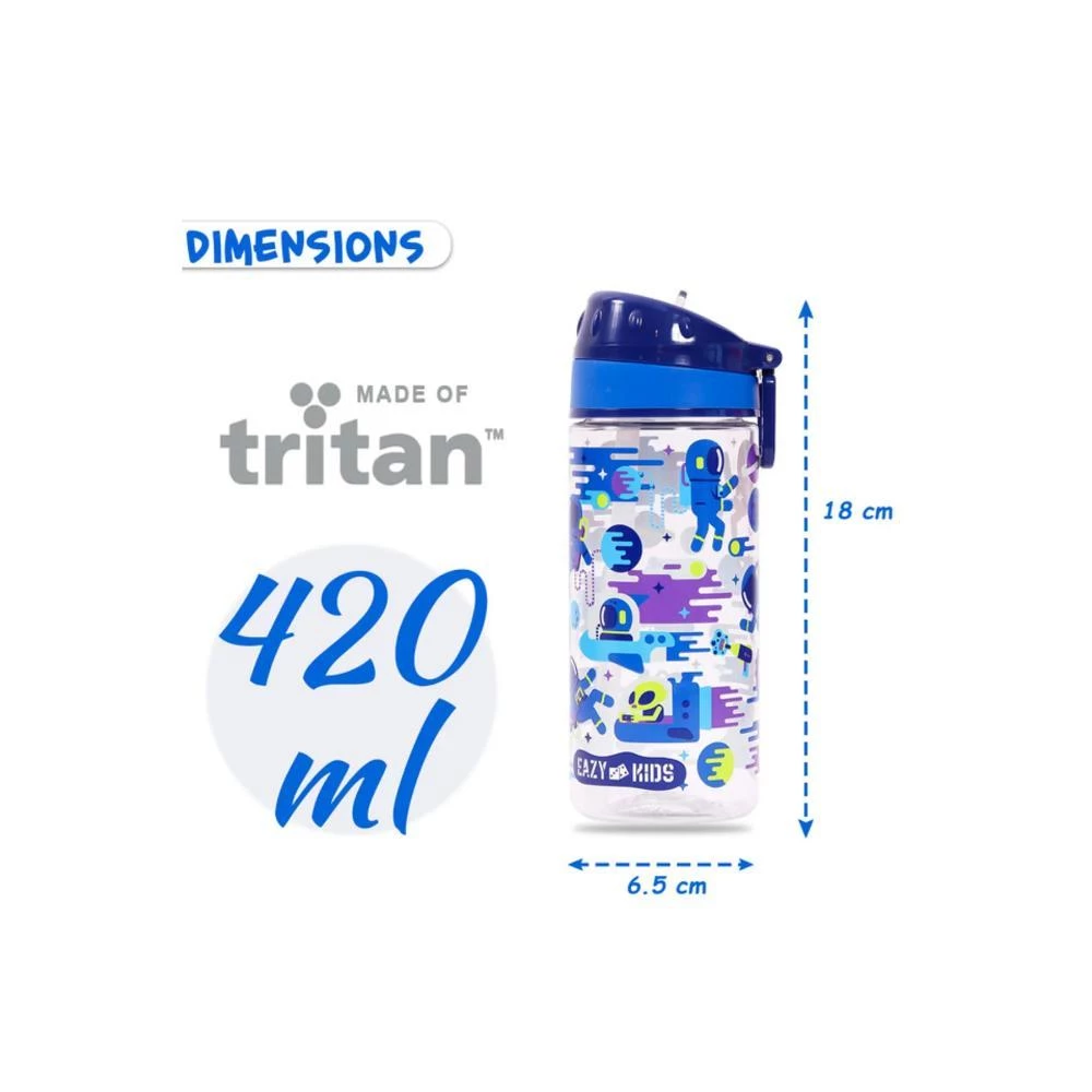 eazy kids astronauts water bottle, kids tritan bottle blue, leakproof kids drinkware, bpa free school water bottle, astronaut print kids bottle, lightweight kids bottle, kids hydration bottle, school water bottle for boys, eco friendly kids drinkware, back to school kids water bottle
