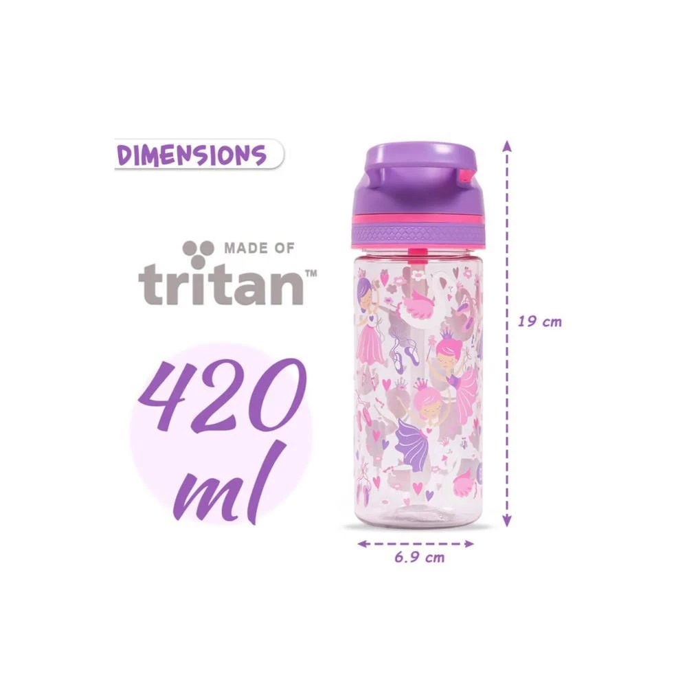 Eazy Kids Tritan Water Bottle with Lockable Push Button & Carry Handle - Tropical Purple 420ml Leakproof Kids Bottle by SAMBOX
