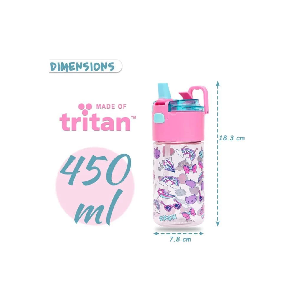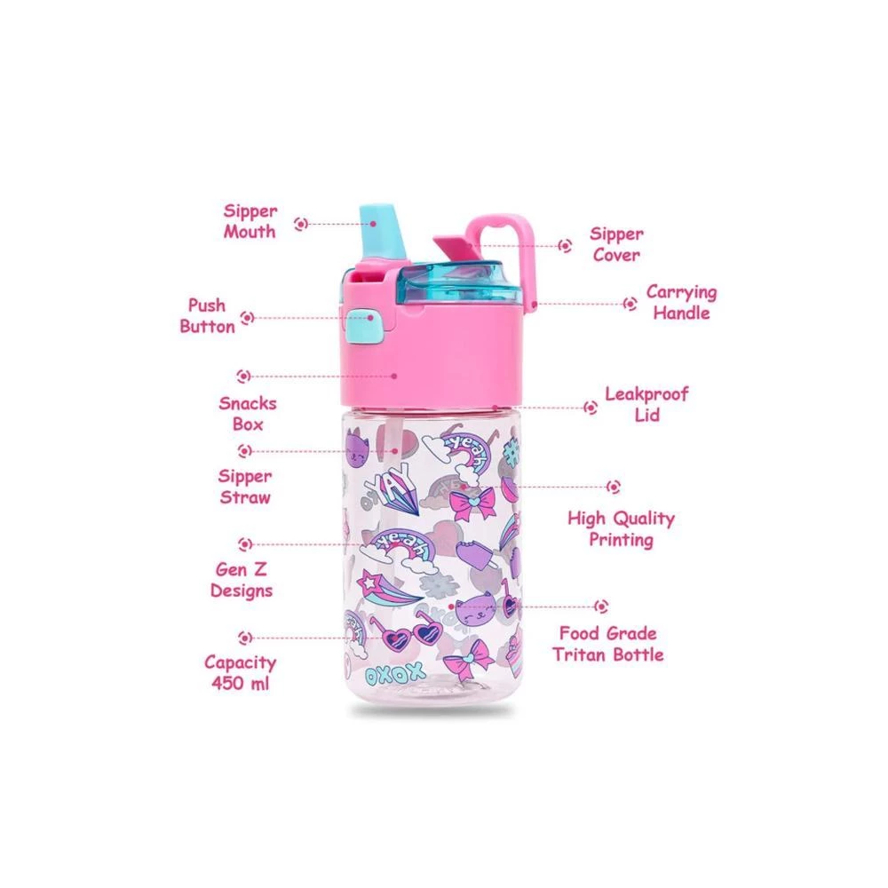 Eazy Kids Tritan Water Bottle with Snack Box - Gen Z Pink 450ml Leakproof Kids Bottle by SAMBOX
