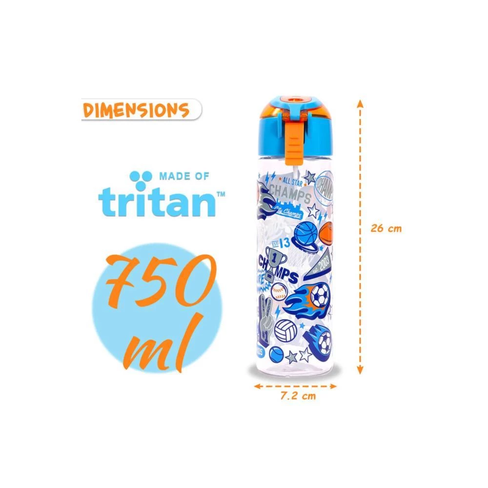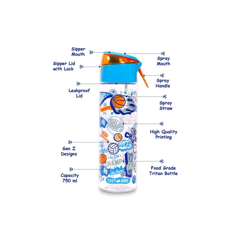 Keep your little champion hydrated and refreshed with the Eazy Kids Tritan Water Bottle with Spray - Soccer Blue by SAMBOX. Designed to make hydration fun, this 750ml kids bottle is crafted from high-quality BPA and phthalates-free Tritan material thats recyclable, non-toxic, food-grade, eco-friendly, and easy to clean. Its silicon-lined sipper lid ensures a leakproof experience, while its freezer safe down to -18°C, dishwasher safe (without the lid on the top rack), and suitable for warm water. Lightweight with clear, sporty soccer prints, this bottle also features a fun spray function so kids can mist their face while playing or during hot weather. Perfect for school, sports, or outings, pair it with an Eazy Kids matching lunch box for the ultimate back-to-school bundle!