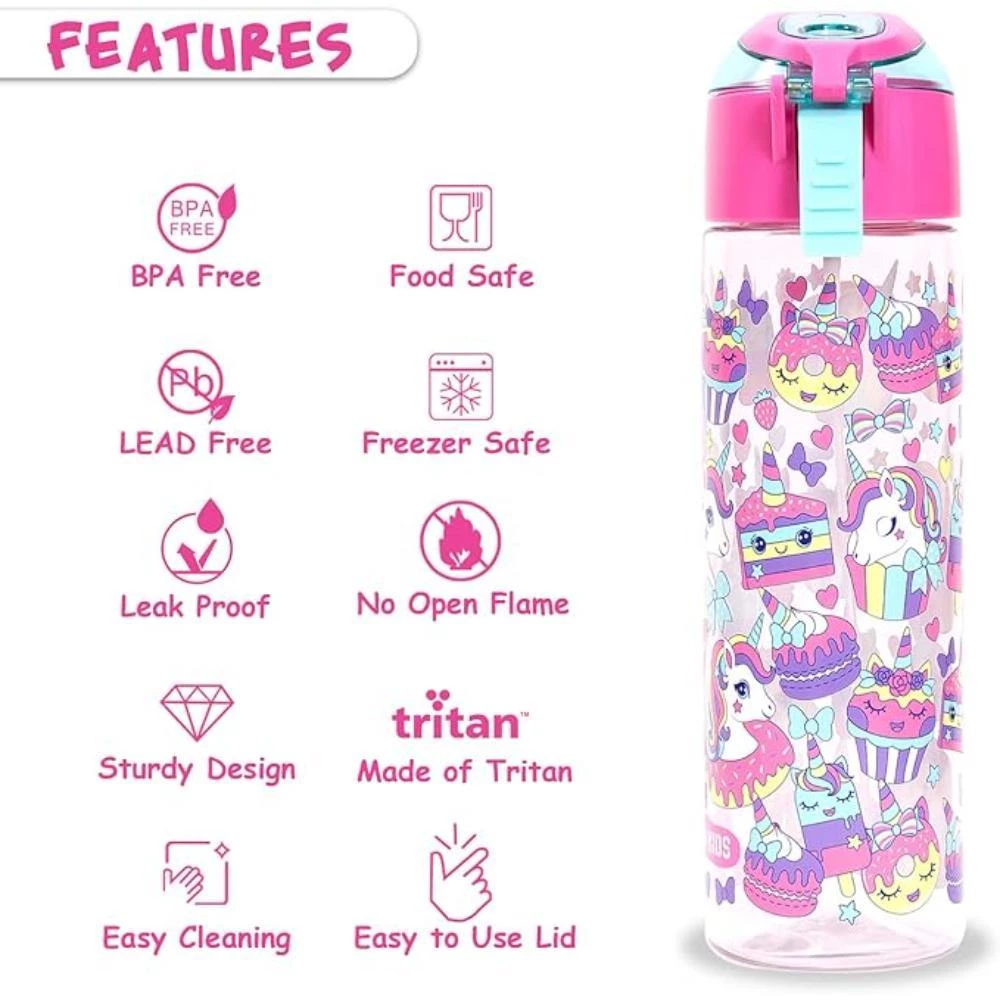 Eazy Kids Tritan Water Bottle with Spray - Unicorn Desert Pink 750ml Leakproof Kids Bottle by SAMBOX