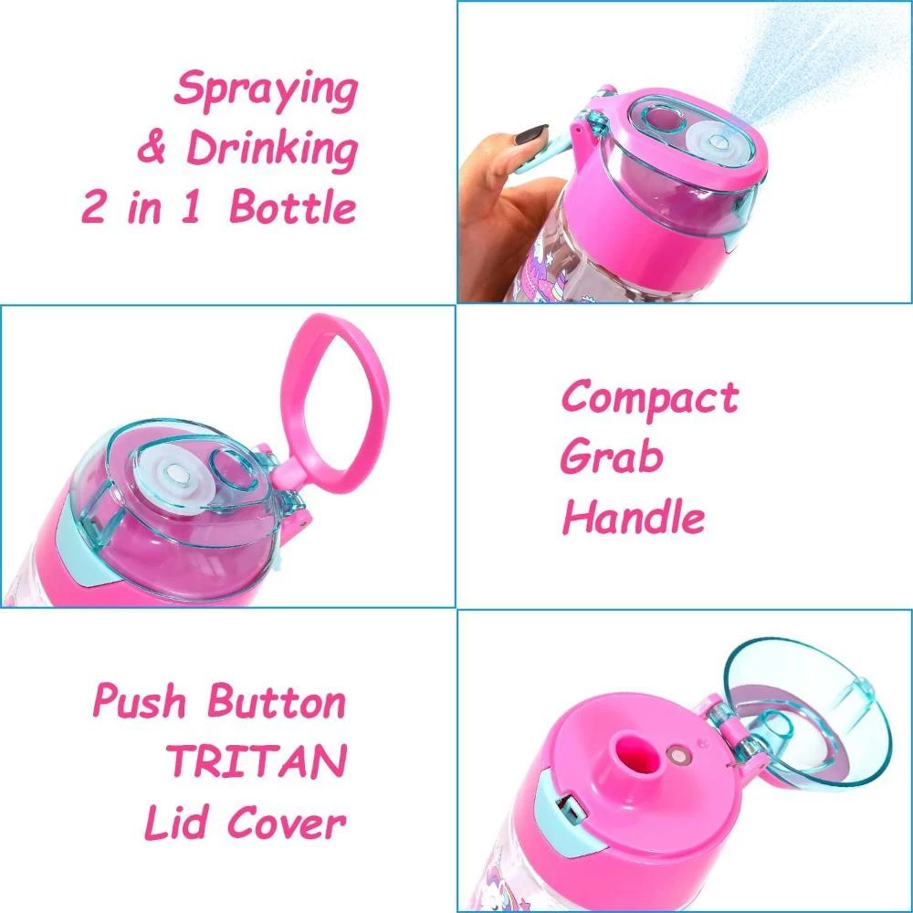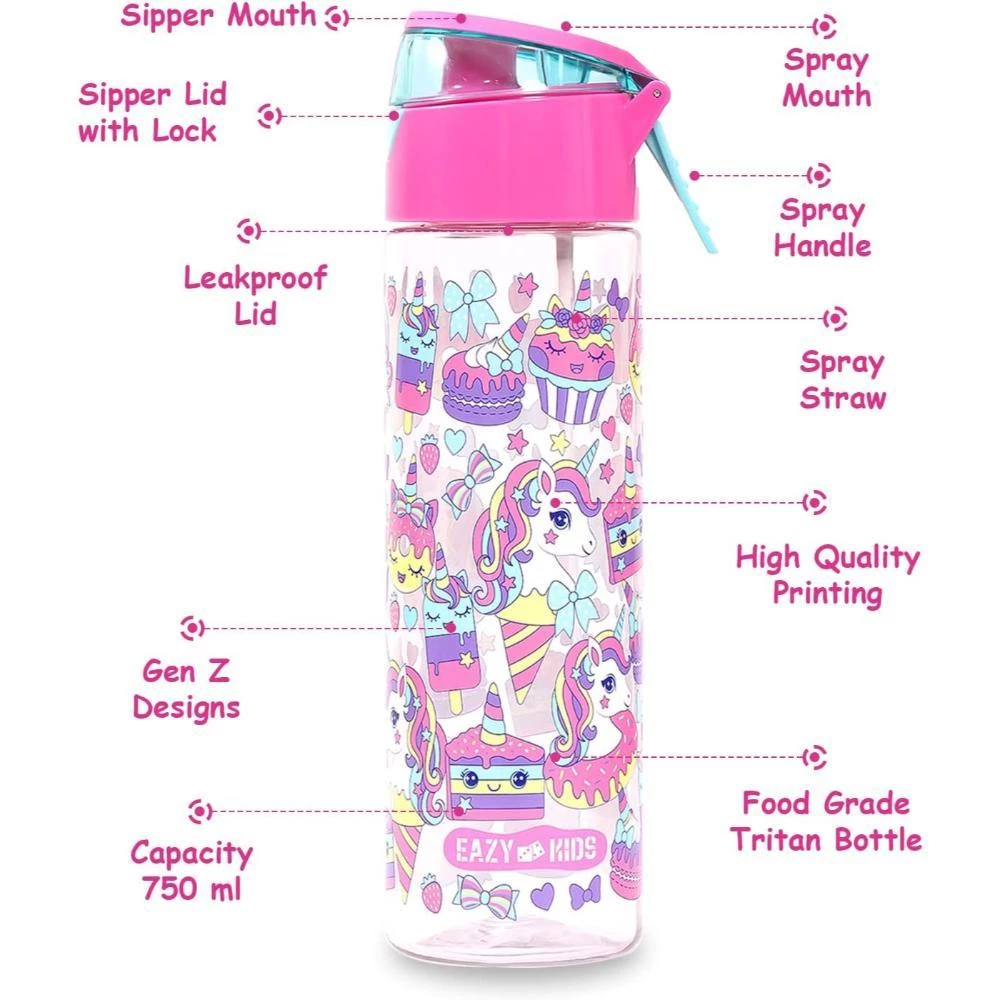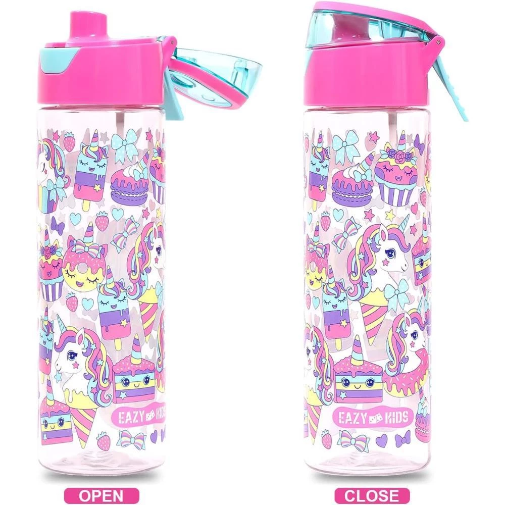 eazy kids unicorn water bottle, pink kids water bottle, tritan kids drinkware, spray water bottle for kids, bpa free kids bottle, leakproof water bottle, kids hydration bottle, kids school bottle, unicorn spray bottle, back to school kids bottle