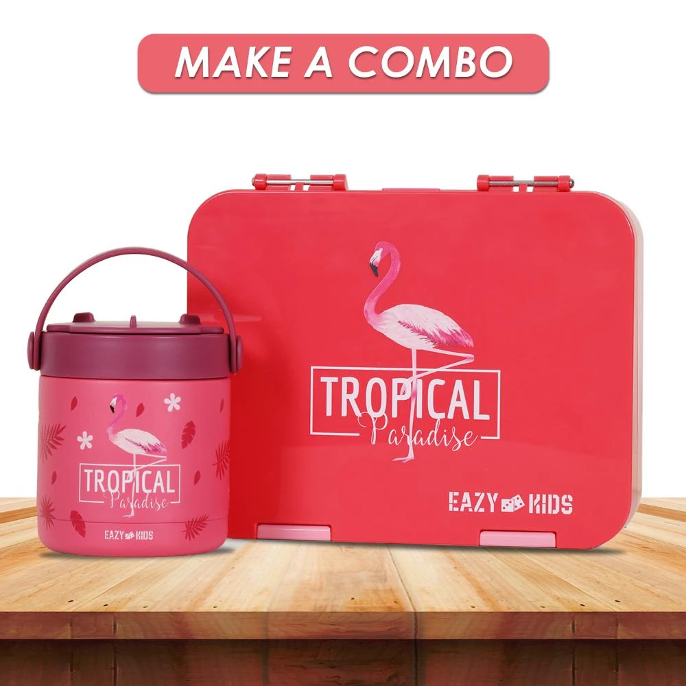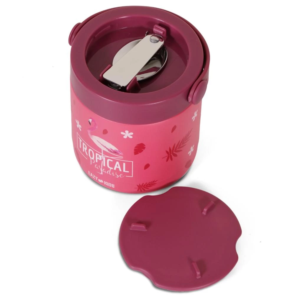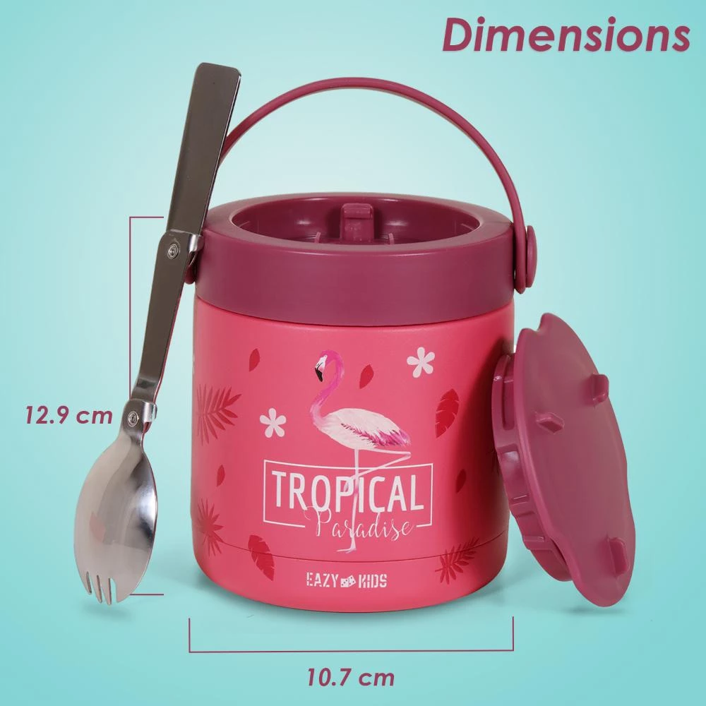 Eazy Kids Tropical Flamingo Stainless Steel Insulated Food Jar - 350ml Leakproof Thermo Container in Pink