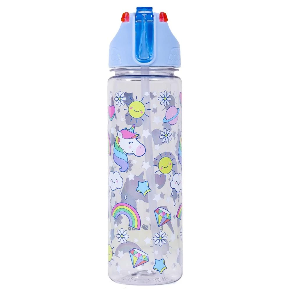 Eazy Kids Unicorn 2-in-1 Tritan Water Bottle - 650ml Leakproof Flip Lid & Sipper - Blue | Eazy Kids