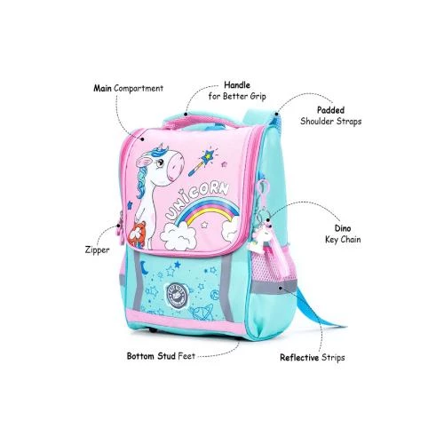 Eazy Kids Unicorn School Bag -Green & Pink Backpack with Keychain by SAMBOX