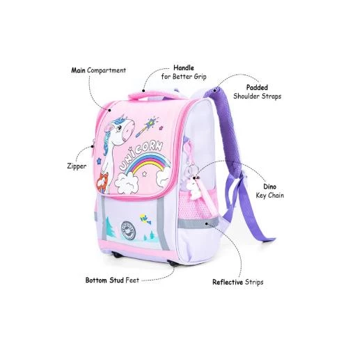 Eazy Kids Unicorn School Bag -Purple & Pink Backpack with Keychain by SAMBOX