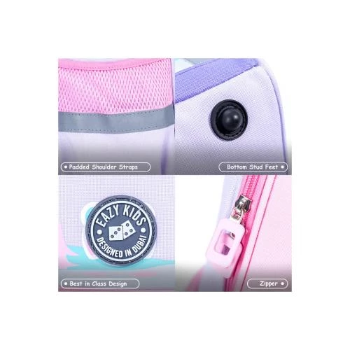 Add a touch of enchantment to your childs school routine with the Eazy Kids Unicorn School Bag in a delightful Purple & Pink colorway by SAMBOX. Designed for both style and durability, this charming backpack features a magical unicorn theme that sparks imagination while offering practical functionality for everyday school needs. Constructed from premium Oxford cloth, the bag is waterproof, dirt-resistant, and machine washable, ensuring it stays looking new no matter the adventure. The spacious U-shaped main compartment includes a dedicated tablet sleeve and multiple storage pockets to organize books, stationery, and essentials with ease. Two half-mesh side pockets are perfect for water bottles or umbrellas, and solid, easy-glide zippers make opening and closing effortless for little hands. With ergonomically padded shoulder straps, cushioned back support, and reflective safety strips for visibility at night, this bag combines comfort, safety, and magical style. Complete with a cute unicorn keychain, its the perfect backpack for school, travel, and beyond.