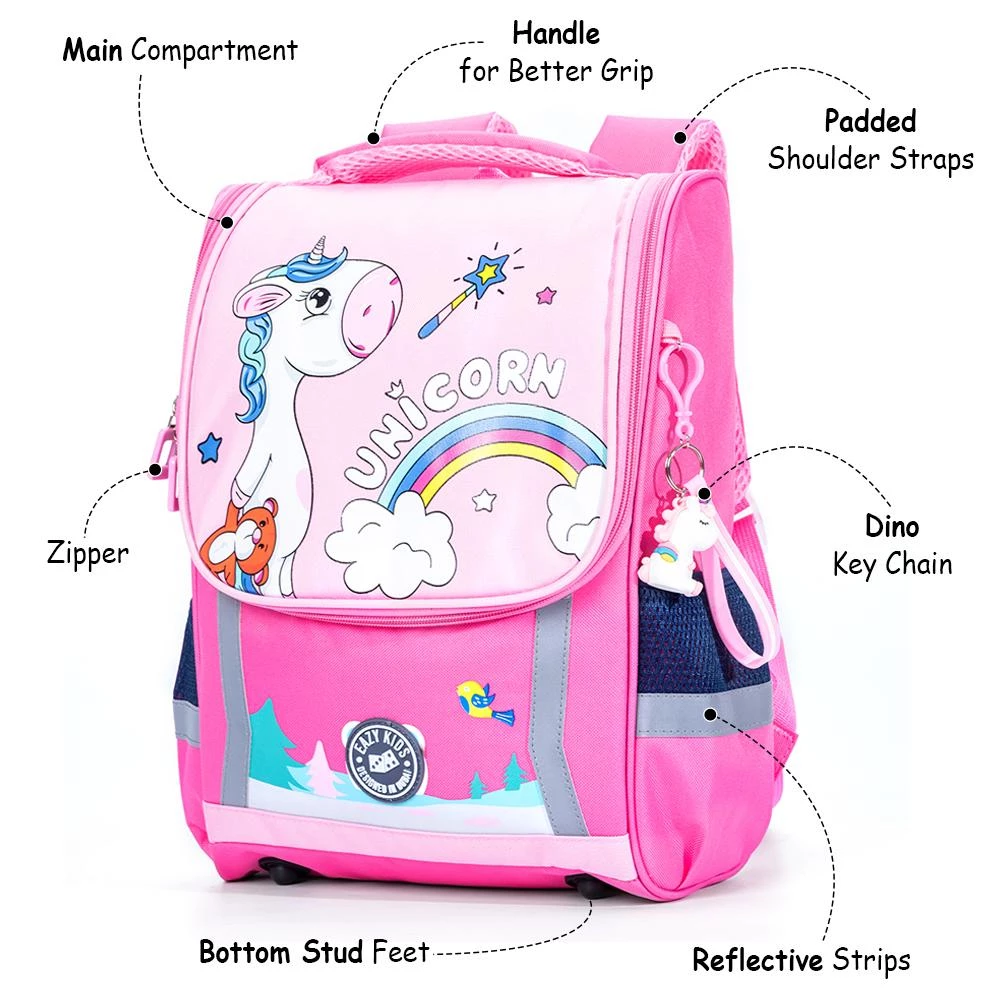 Eazy Kids, unicorn school bag, pink trolley school bag, backpack with wheels, girls school bag, kids school trolley, stair climbing bag, waterproof backpack, princess pink bag, ergonomic school bag