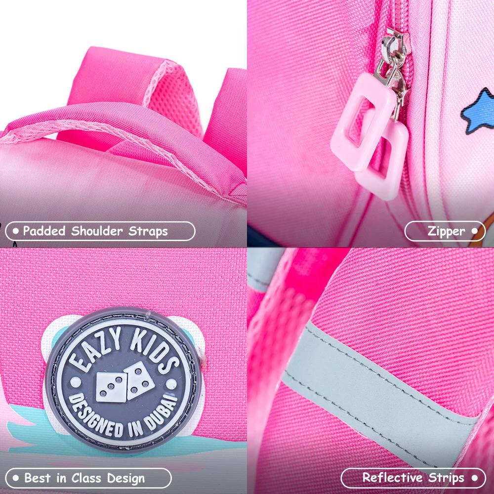 Eazy Kids Unicorn School Bag with Stair-Climbing Trolley – Princess Pink
