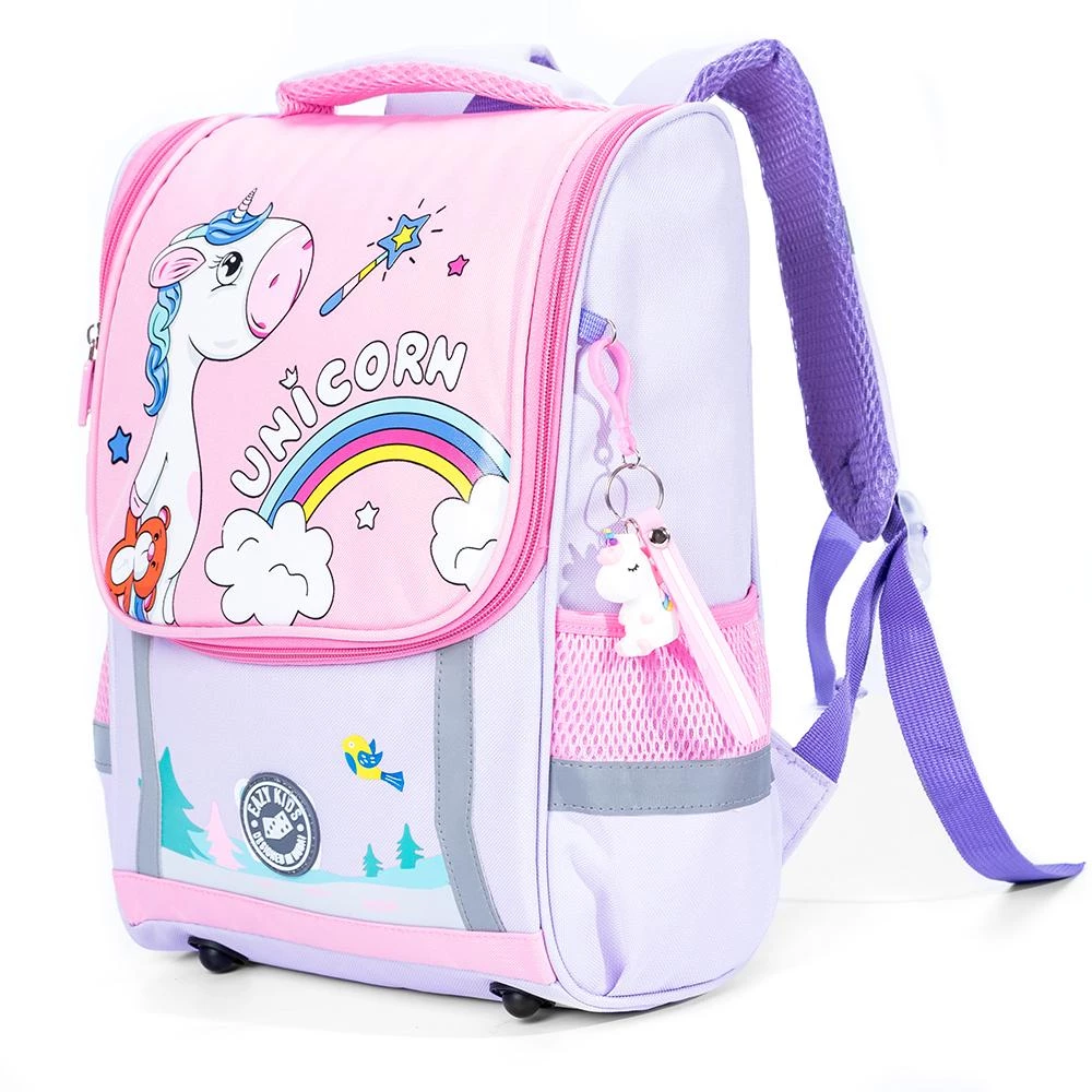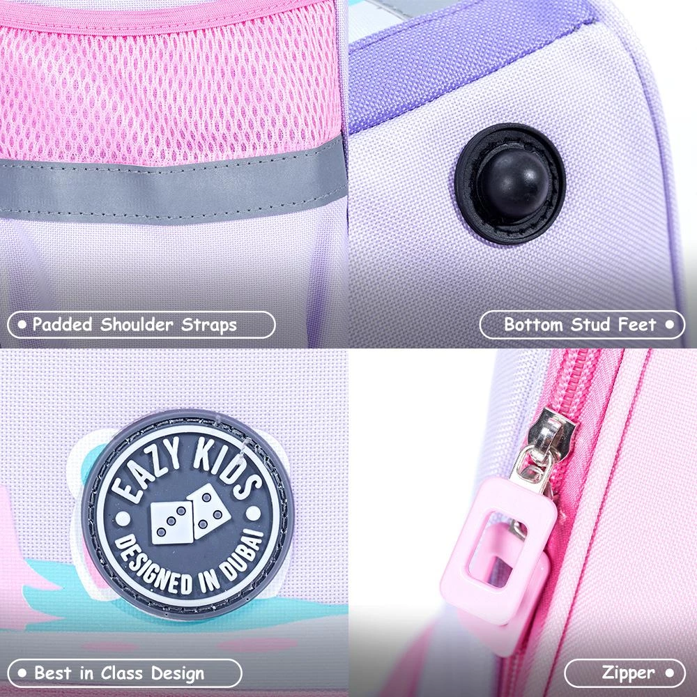 Eazy Kids, unicorn school bag, purple trolley backpack, school bag with wheels, stair climbing trolley, ergonomic backpack, waterproof school bag, magical school bag, kids trolley backpack