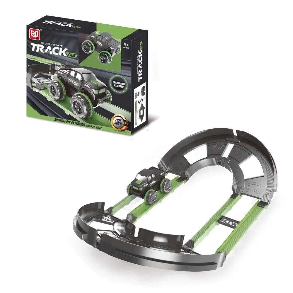 electric stunt car, rolling rail car, diy race track, light-up toy car, stunt track set, 24 piece track set, kids racing toy, build your own track, rolling stunt car, creative playset