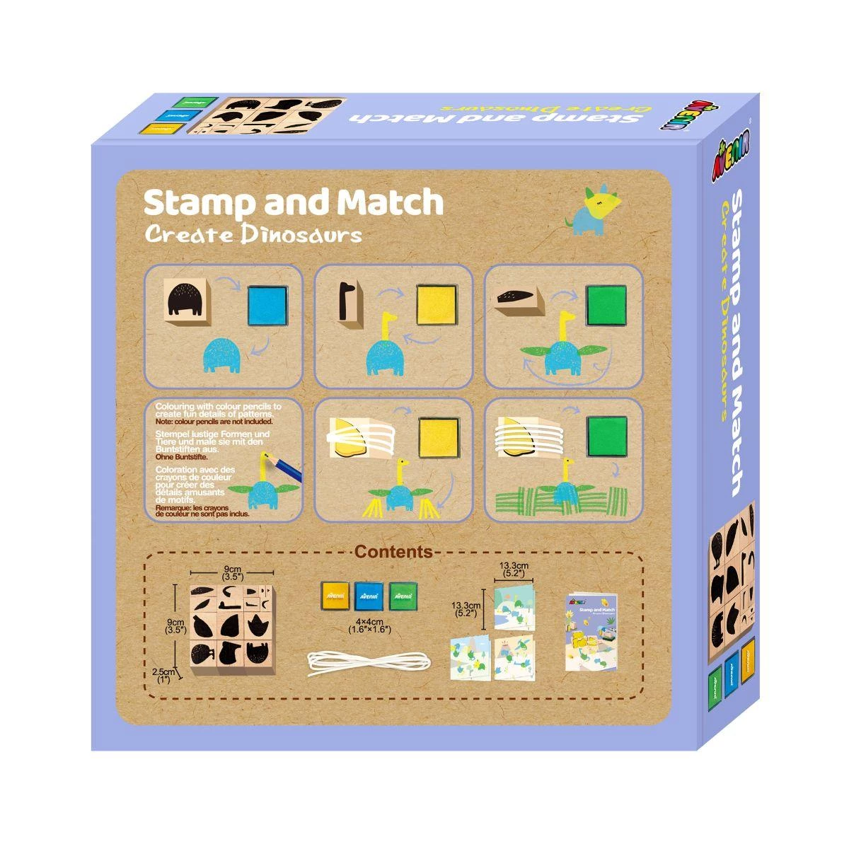 Avenir Stamp and Match - Create Dinosaurs | 15 Wooden Stamps & Creative Card-Making Set for Kids