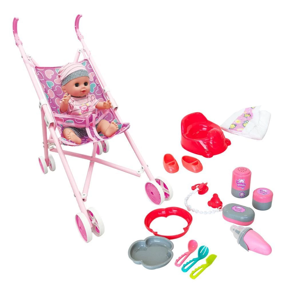 Amoura Drink and Pee doll, Baby Amoura stroller set, 14-inch baby doll, interactive baby doll, pretend play baby set, role-play doll for kids, talking baby doll, potty training doll
