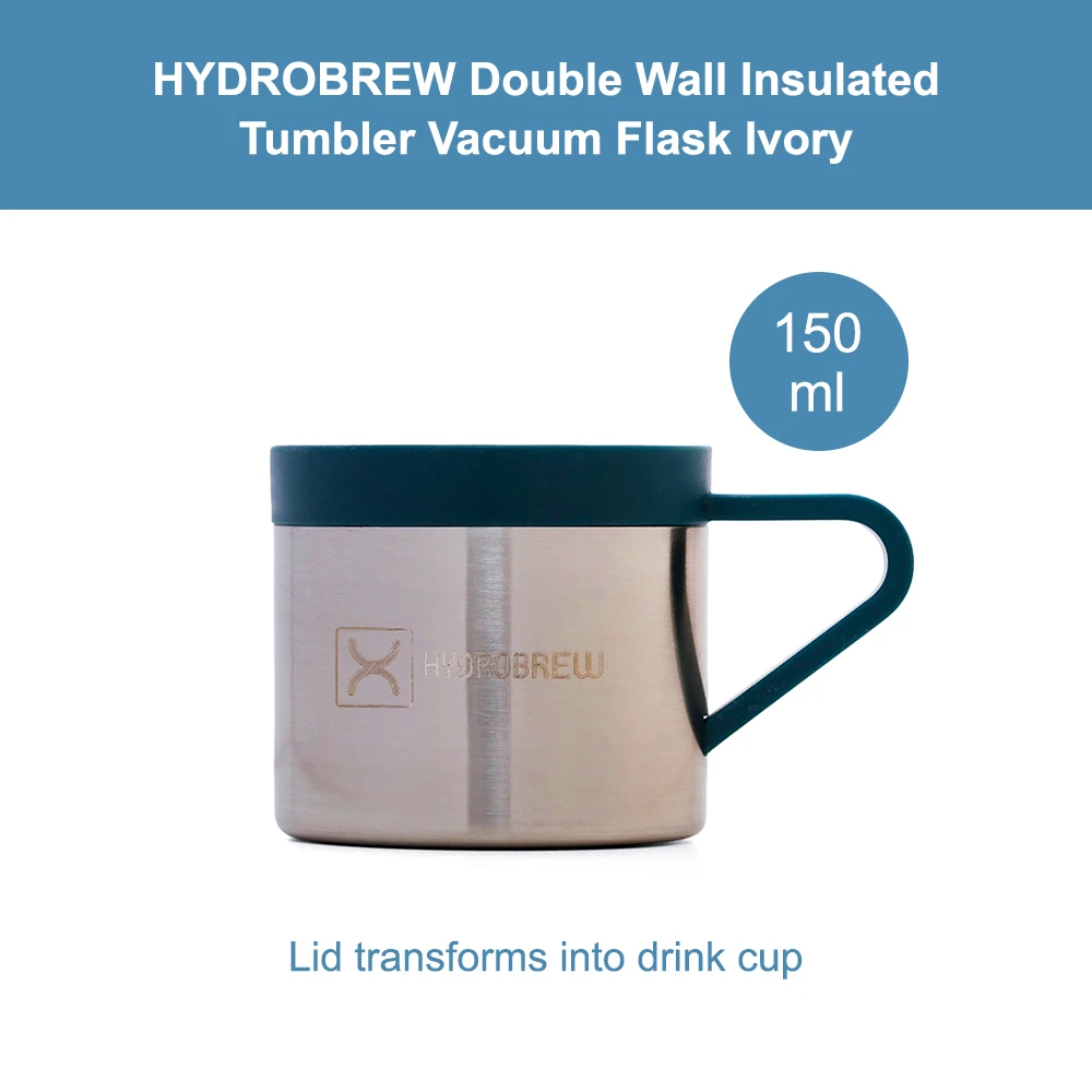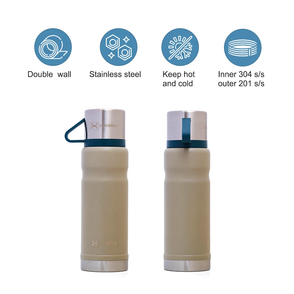 HYDROBREW Insulated 650ml Vacuum Flask with 2×150ml Cups - Ivory