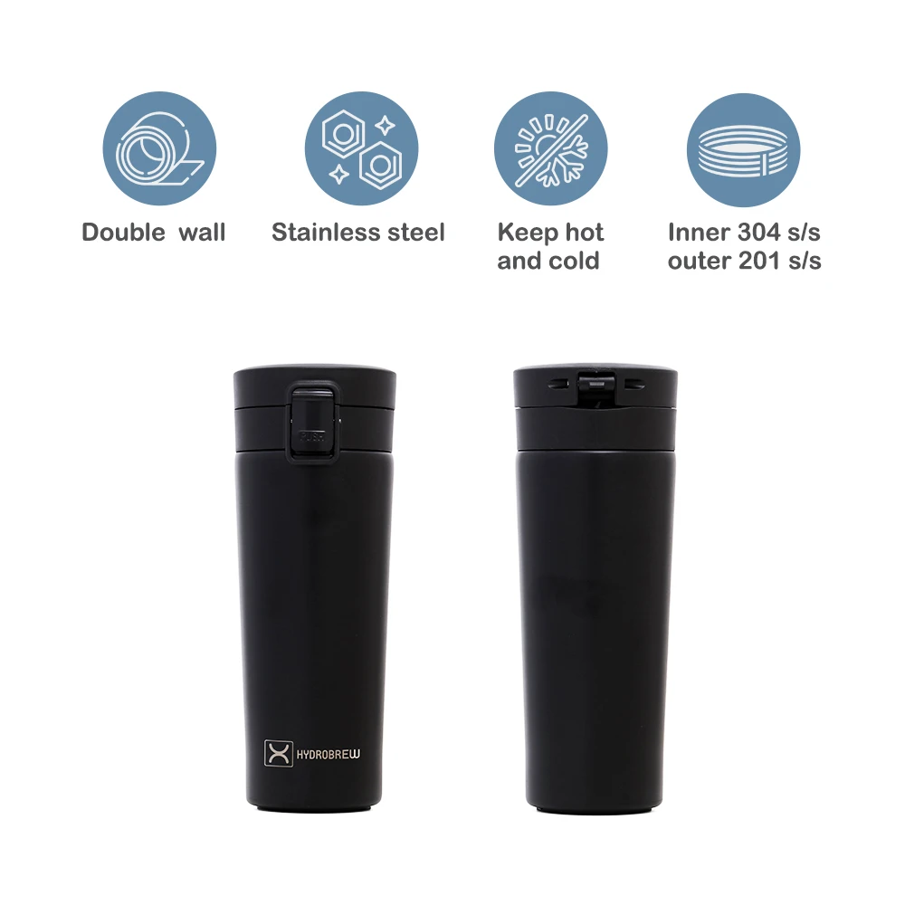 HYDROBREW Insulated Tumbler Water Bottle - Black, 500ml