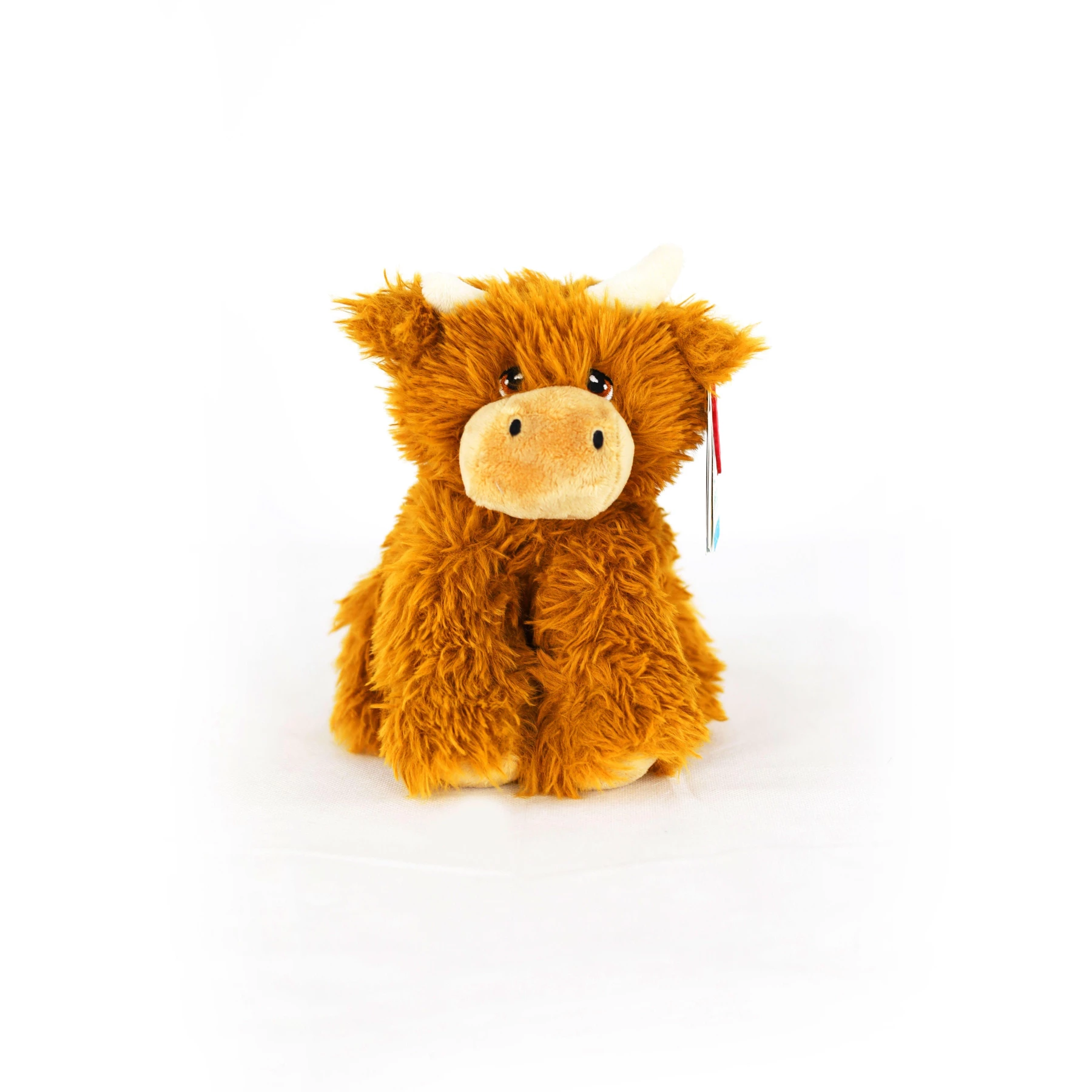 Keeleco highland cow plush, farm animal soft toy, eco-friendly stuffed cow, sustainable plush toy, Keel Toys UAE, recycled toys, 20cm cow plush, soft farm animal toy