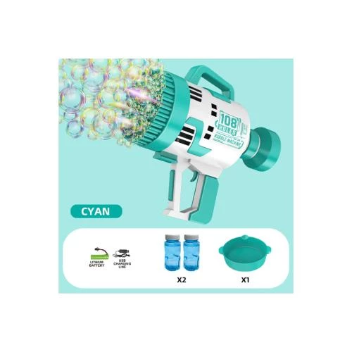 Little Story 108 Holes Bubble Machine Gun with Light & Rechargeable Battery -Cyan