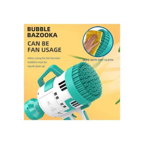 Get ready for non-stop bubble fun with the Little Story 108 Holes Bubble Machine Gun with Light in Cyan by SAMBOX. Designed with a powerful 108-hole nozzle and built-in LED lights, this bubble blaster blows out over 10,000 bubbles per minute, turning playtime into a magical spectacle for kids and adults alike. Crafted from high-quality ABS and PP material, it's eco-friendly, durable, and completely safe with smooth, edge-free construction. The thickened anti-fall shell ensures long-lasting fun, while the rechargeable 500mAh lithium battery provides sustainable, continuous bubble action. Plus, the bubble machine head detaches to transform into a mini handheld fan-perfect for keeping cool during sunny outdoor adventures. Perfect for parties, backyard fun, or indoor entertainment, this bubble gun includes a USB cable, 2 bottles of bubble liquid, a tray, and rechargeable battery. Recommended for kids aged 3+, its a trending gift loved across social platforms for its high bubble output and cool design.