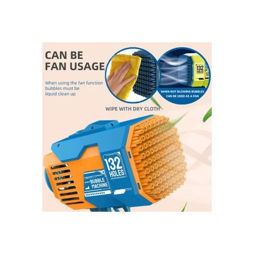 Make playtime a blast with the Little Story 132 Holes Bubble Machine Gun with Light -now in a bright Orange color -by SAMBOX! This high-performance bubble maker creates over 10,000 bubbles per minute through 132 bubble-blowing holes, making it a hit with both kids and adults. The colorful LED lights add extra excitement, especially during evening play. Made from premium ABS and PP materials, the gun is built with a thickened, anti-fall shell and smooth, edge-free design to ensure maximum safety. The included 2000mAh rechargeable lithium battery is eco-friendly and keeps the bubbles flowing non-stop. Whats more, the detachable bubble head turns the toy into a mini fan, offering a refreshing breeze on hot days. Loved across social media by influencers and families, this bubble gun is the ultimate gift for birthdays, outdoor adventures, and indoor fun. Includes 2 bottles of bubble liquid, USB charger, tray, and rechargeable battery. Pro Tip: Always use the included bubble solution for optimal results and avoid overfilling.