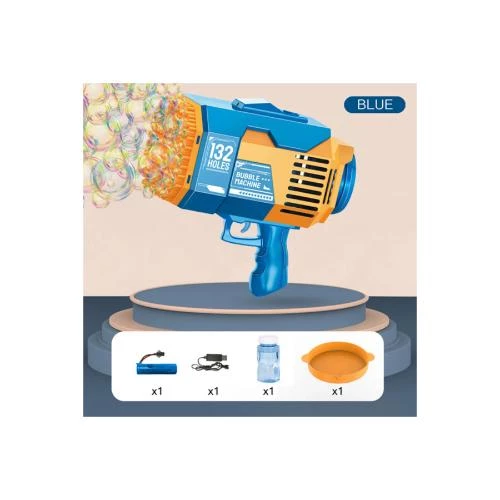 Little Story 132 Holes Bubble Machine Gun with Light & Rechargeable Battery -Orange