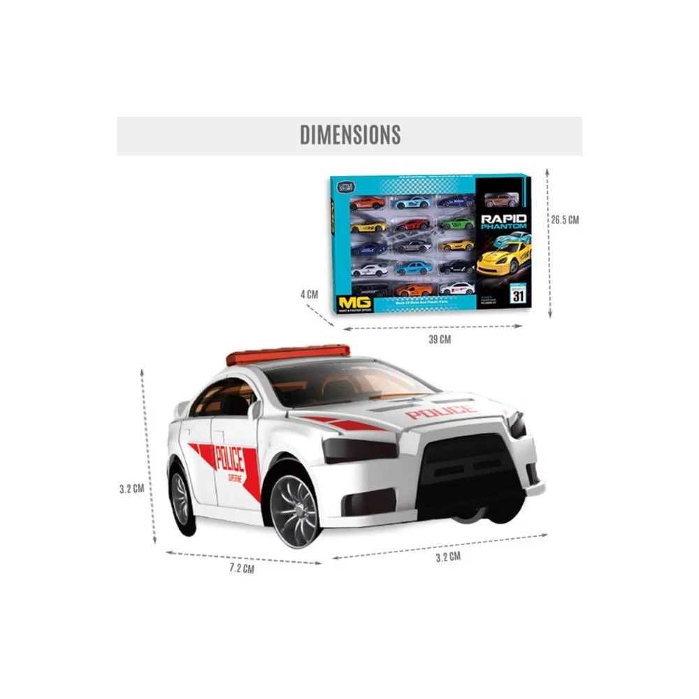 The Little Story 16Pcs Slide Die-Cast Toy Rapid Car Set by SAMBOX is an action-packed collection thats perfect for kids who love cars and racing adventures. This set includes 16 high-quality metal and ABS cars in mixed designs, giving children endless ways to play, race, and create their own parking lots or tracks. Each die-cast car is built to last, with smooth slide action that helps develop motor skills, creativity, and problem-solving abilities while encouraging collaborative and active play. These mini cars are perfectly sized for little hands, making them great for on-the-go fun, party favors, or gifts for any young car enthusiast. No batteries required means worry-free fun anytime. Each car measures 7.2×3.2×3.2 cm and the full set comes packed in a sturdy 39×26.5×4 cm box weighing 0.63 kg. Safe for kids ages 3 and up, this colourful set inspires curiosity and imaginative play every day.