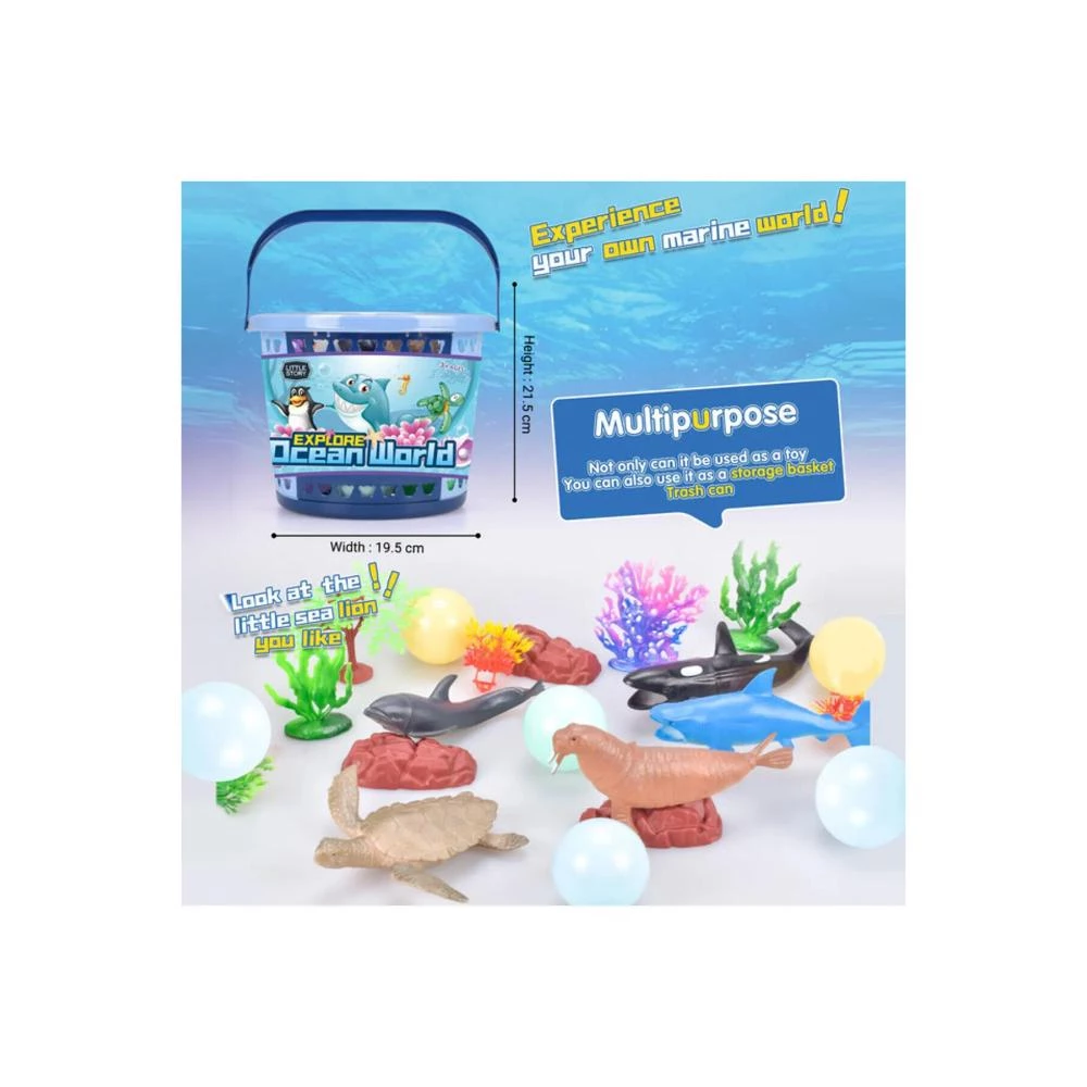 Tags: ocean world toy set, marine life bucket, sea animal playset, ocean adventure toys, kids aquatic toy, little story ocean toys, portable ocean animal figures, underwater play kit, childrens marine toy set, ocean themed gift for kids