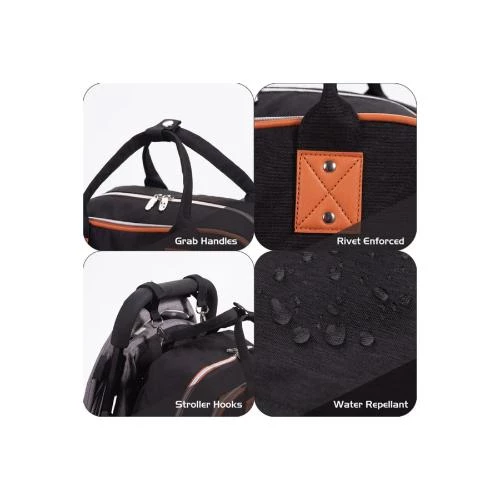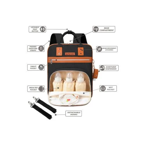 black diaper backpack, diaper bag with insulated pockets, waterproof diaper bag for travel, large capacity baby bag, organizer diaper backpack, mom and dad diaper bag, bottle storage baby backpack, diaper bag with stroller hooks, diaper bag with sanitizer holder, stylish maternity diaper bag