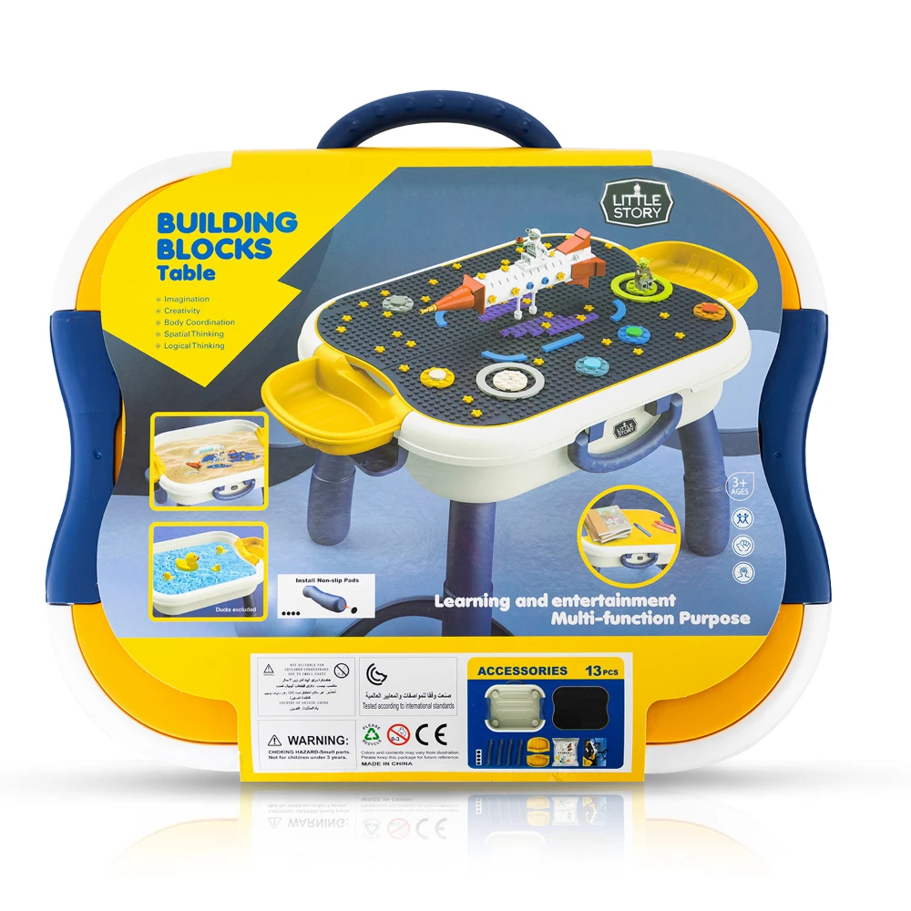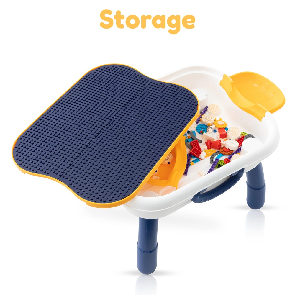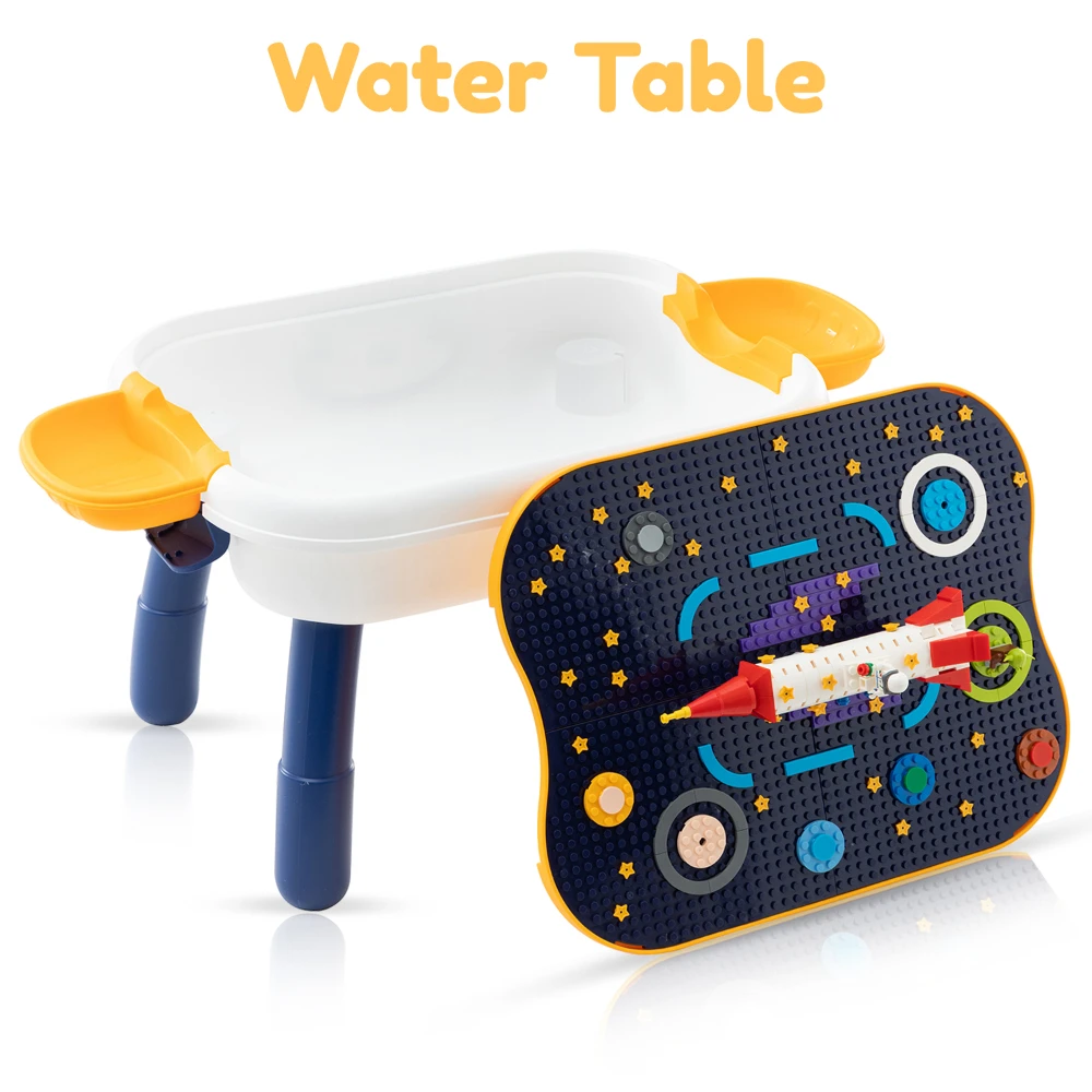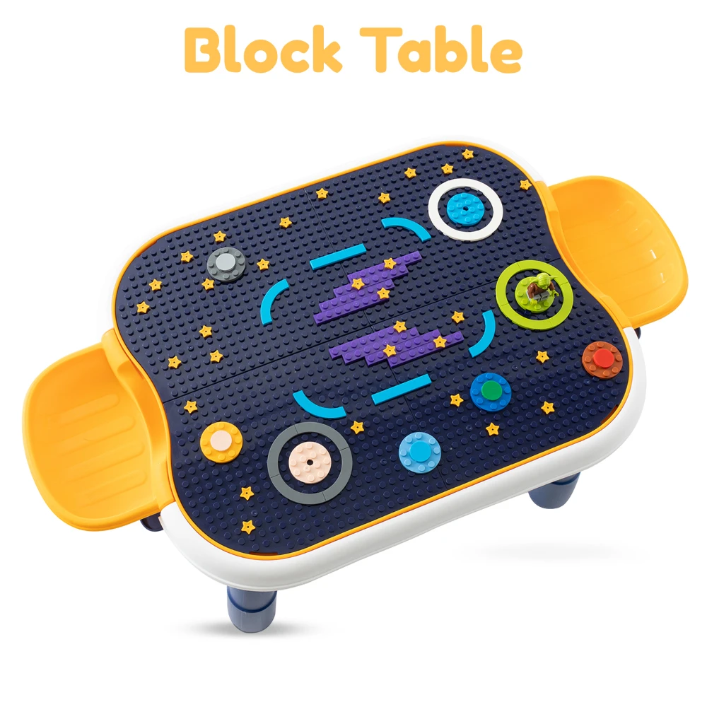activity table, kids play table, 4-in-1 activity set, building blocks table, toddler learning toy, multifunctional kids table, blue play table, indoor outdoor toy, early development toy, kids furniture, creative play