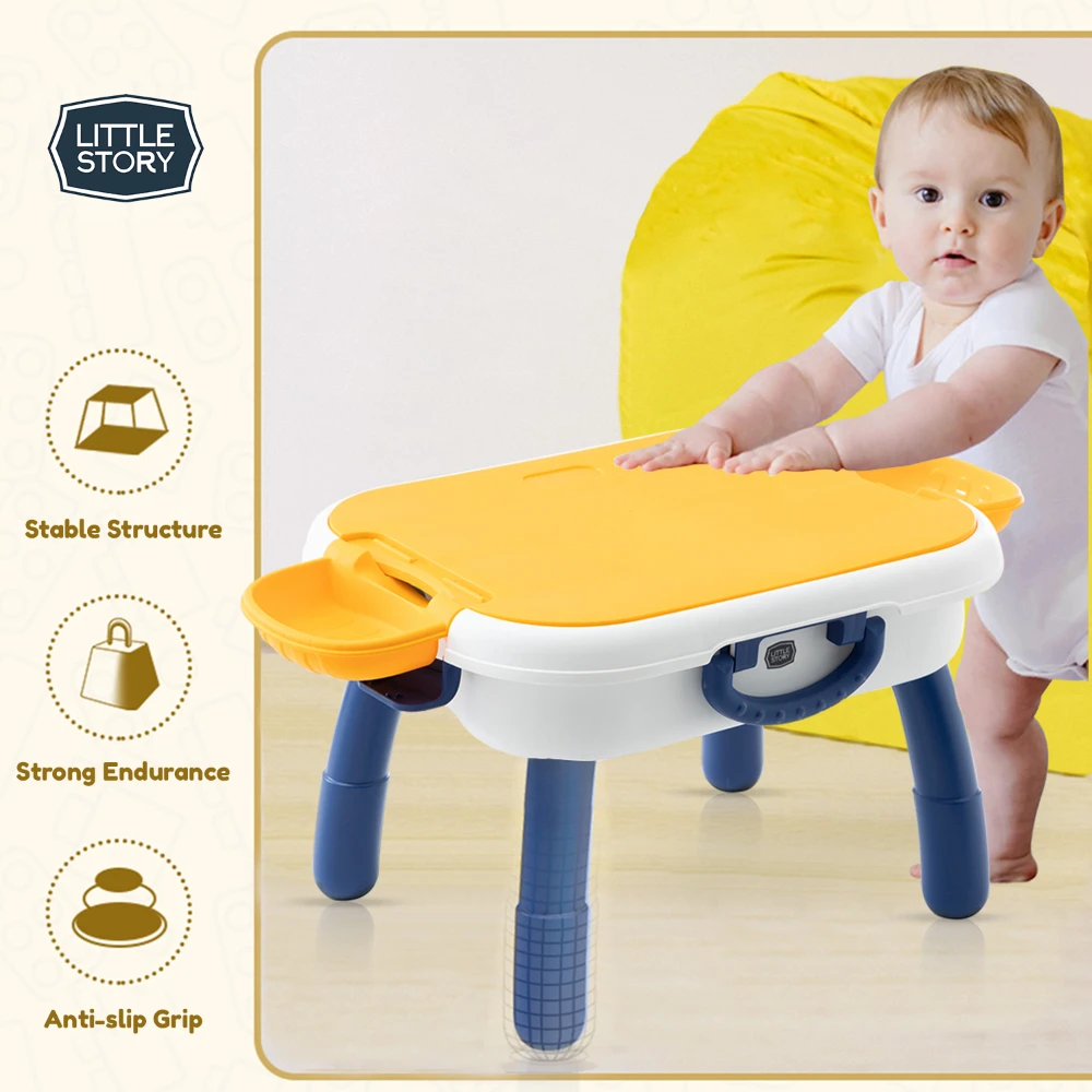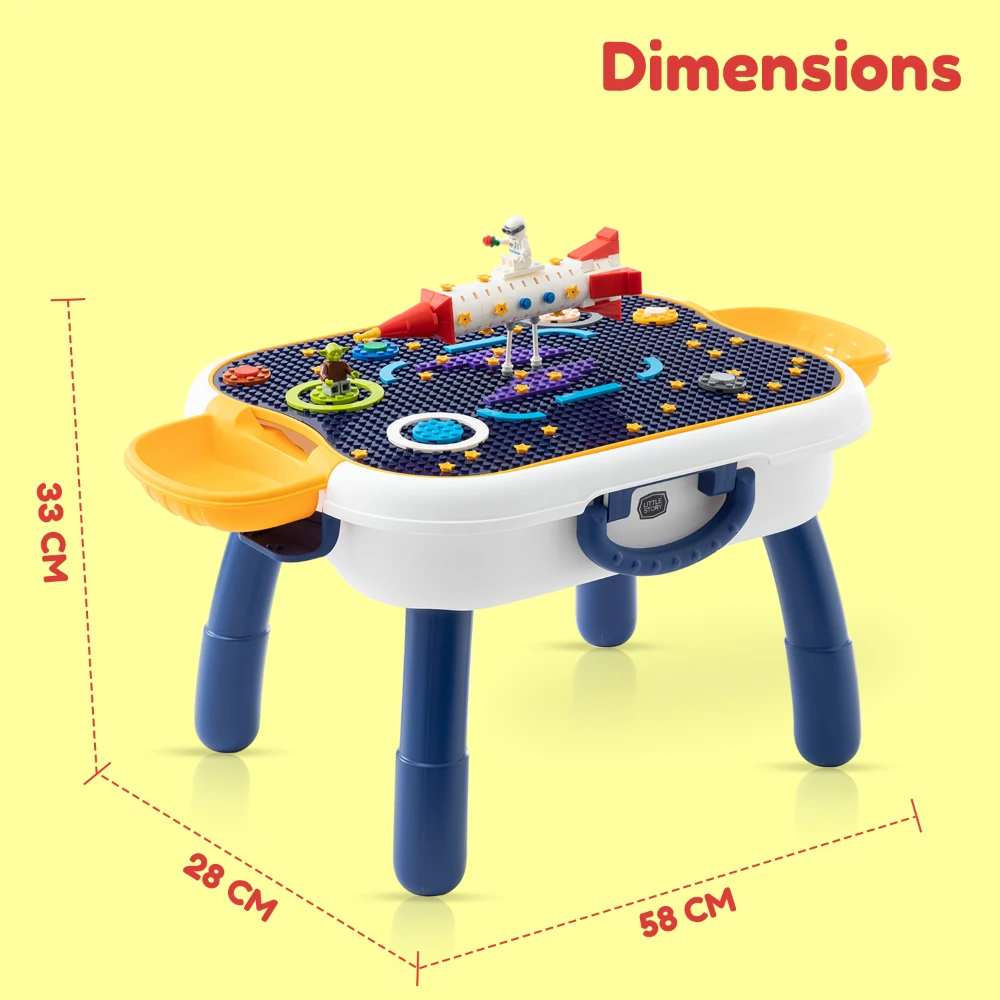 Little Story 4-in-1 Kids Activity Table with Building Blocks & Storage - Blue