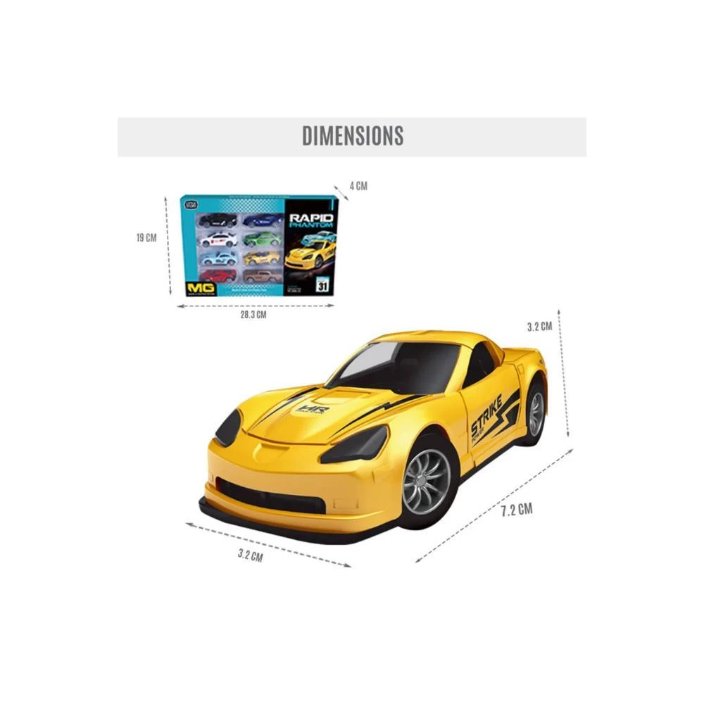 The Little Story 8Pcs Slide Die-Cast Toy Rapid Car Set by SAMBOX is a fun-filled collection for kids who love speedy adventures and imaginative racing. This set includes 8 durable die-cast cars made from high-quality metal and ABS material, each with unique designs to spark creativity and endless play. Perfect for pretend racing, car collections, or parking lot games, these mini cars help develop motor skills, boost problem-solving abilities, and encourage active play with friends. Sized just right for little hands, they make great gifts, party favors, or stocking stuffers for kids who cant get enough of cars. The smooth slide action ensures hours of battery-free fun anywhere - at home or on the go. Each car measures 7.2×3.2×3.2 cm and the full set comes packed in a sturdy 28.3×19×4 cm box with a total weight of 0.28 kg. Safe for kids ages 3 and up, this set adds excitement and creativity to any playtime.