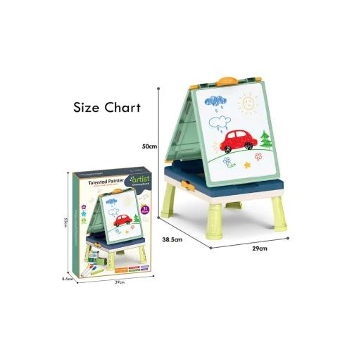 Inspire creativity and endless fun with the Little Story Artist Double Sided Handbag Drawing Board by SAMBOX -a multifunctional 31-piece art and game set designed to keep your little ones engaged in hands-on play and learning. Styled like a portable handbag, this double-sided board features both a classic blackboard and a white magnetic surface, allowing children to switch between writing, drawing, and playing with ease. It includes 5 colorful pens, a box of colored chalk, a board eraser, and 2 exciting board games (including Ludo) with dice and pawns for interactive play. Its foldable, stable design makes it easy to use with or without a table, while rounded edges ensure safety during play. Whether for early learning, artistic expression, or a family game night, this versatile and compact set is perfect for children aged 3 and up. Makes a thoughtful gift for birthdays, holidays, and special occasions.