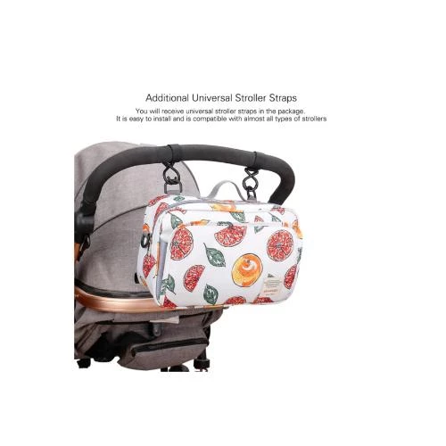 Little Story Baby Diaper Changing Clutch Kit -Fruity White Portable Diaper Organizer with Shoulder & Stroller Straps by SAMBOX