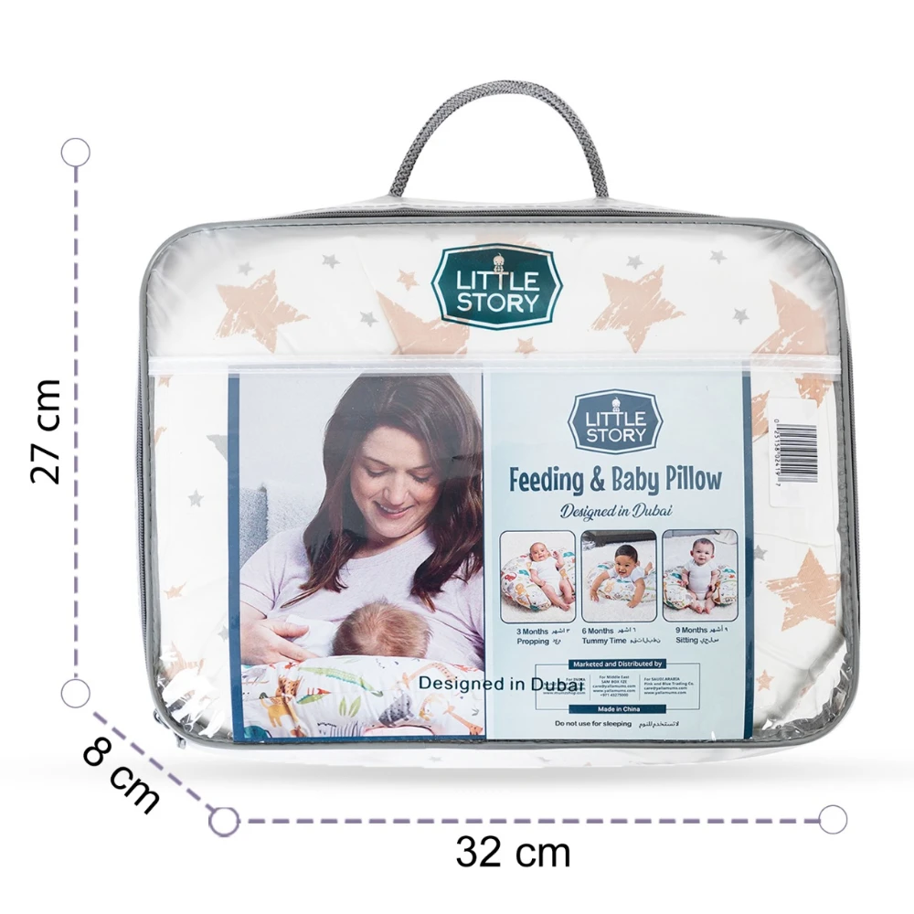 little Story, baby nursing pillow, feeding cushion, ergonomic baby pillow, stars print pillow, tummy time support, breastfeeding support, sitting aid, machine washable pillow, 0-12 months baby accessory