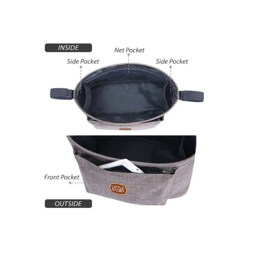 Little Story Bronx Stroller Organizer -Lightweight Diaper Storage Caddy with Zipper Pocket -Ivory