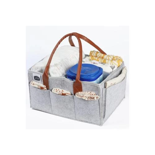 diaper caddy organizer, baby nursery basket, portable diaper caddy, felt diaper storage, foldable baby organizer, travel diaper pouch, grey diaper caddy, crib side organizer, baby changing station organizer, multipurpose diaper tote, little story diaper caddy, newborn essentials organizer