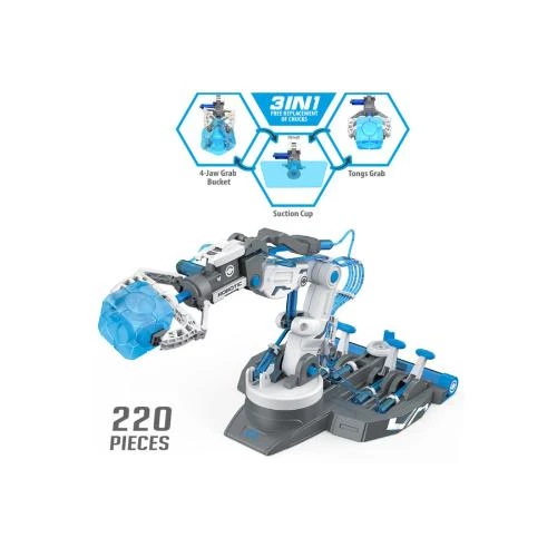Little Story DIY Hydraulic 3-in-1 Mechanical/Robotic Arm Toy (220 Pcs) -STEM Series, Grey