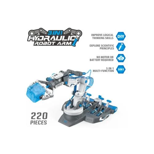 diy hydraulic robotic arm mechanical arm toy stem educational kit 3-in-1 hydraulic power kids science technology engineering math grey en71 certified birthday gift