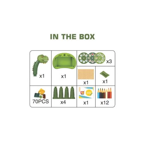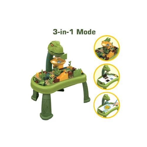 The Little Story DIY T-Rex 3-IN-1 Spinning Puzzle Block Table, Projection Drawing Board & Learning Table Set by SAMBOX is a versatile and educational STEM toy designed for children aged 3 and above. This multicolor set combines three exciting modes: a spinning puzzle block table, a projection drawing board, and a learning table, fostering creativity and fine motor skills. Kids can trace 24 different objects projected through a colorful light beam onto the drawing board, enhancing their artistic and concentration skills. The set includes 12 colors, 1 notebook, 1 eraser, 3 colorful projection sheets with 24 patterns, and a block board with 70 blocks. Powered by 3 AA batteries (not included), the drawing board offers endless artistic fun with easy erase capabilities thanks to the included eraser. Made from high-quality materials and EN71 certified, this learning table makes a perfect gift for birthdays, holidays, and special occasions to inspire imagination and learning.